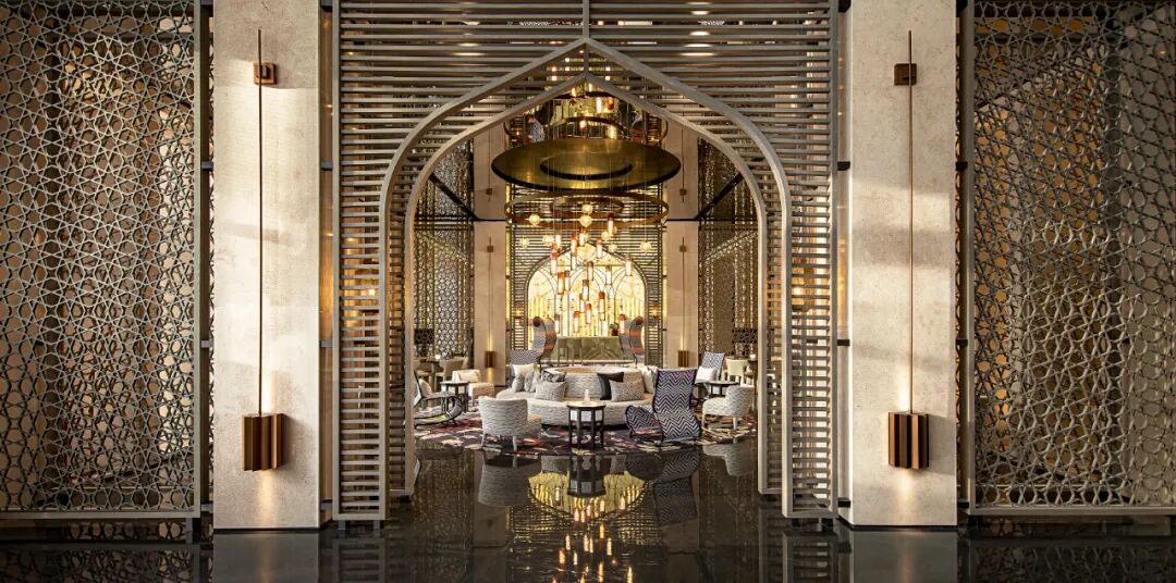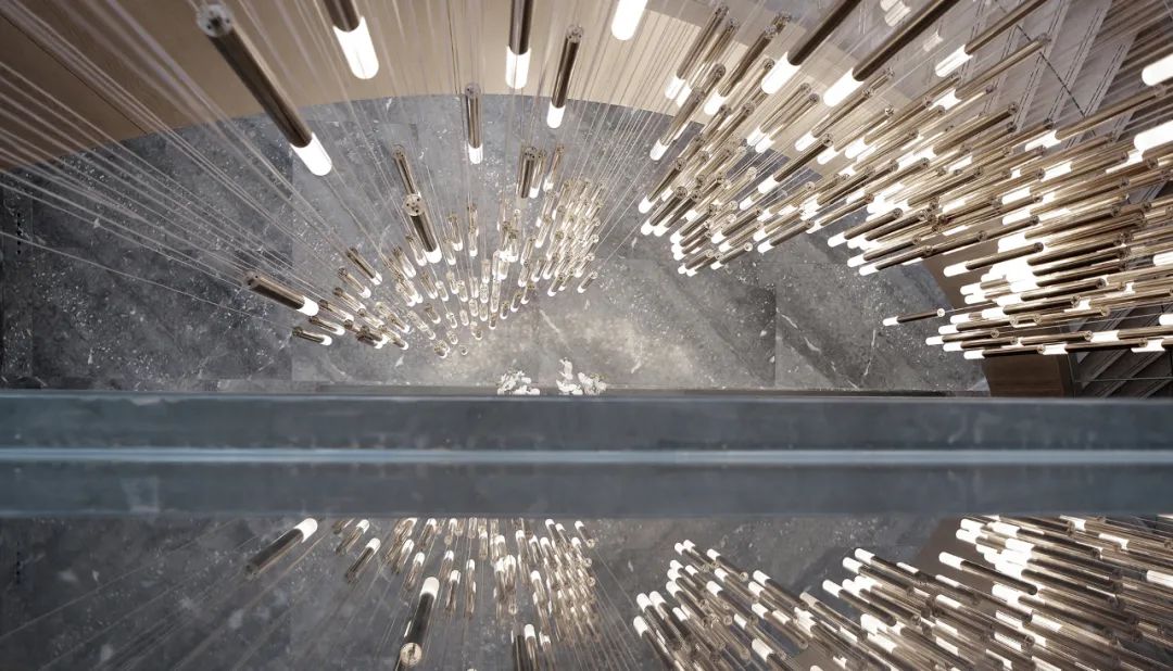 主要材料| 定制金屬網、和紙亞克力、皮革、肌理漆,銅鏡,透光雲石,透光石片,古銅色金屬,戴維斯金石材