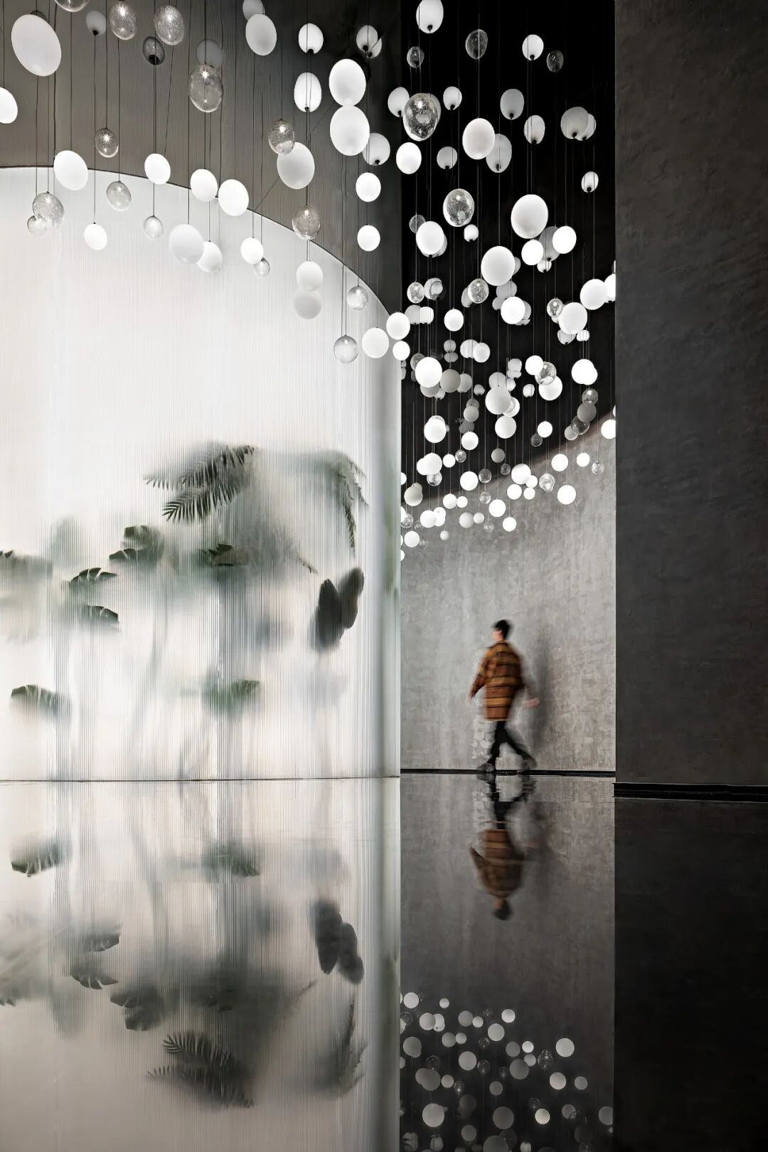 The natural transition between the sense of future science and technology and the green ecological environment continues the new scene-like experience space. There is a circle of simulated green plants around the elevator hall on the lower floor, which reflects colorful changes under the crystal light. The two are very consistent, as if in the vast expanse, the stars shine in the Milky Way, and the dream and reality set off each other to create a more vivid starry sky experience.
