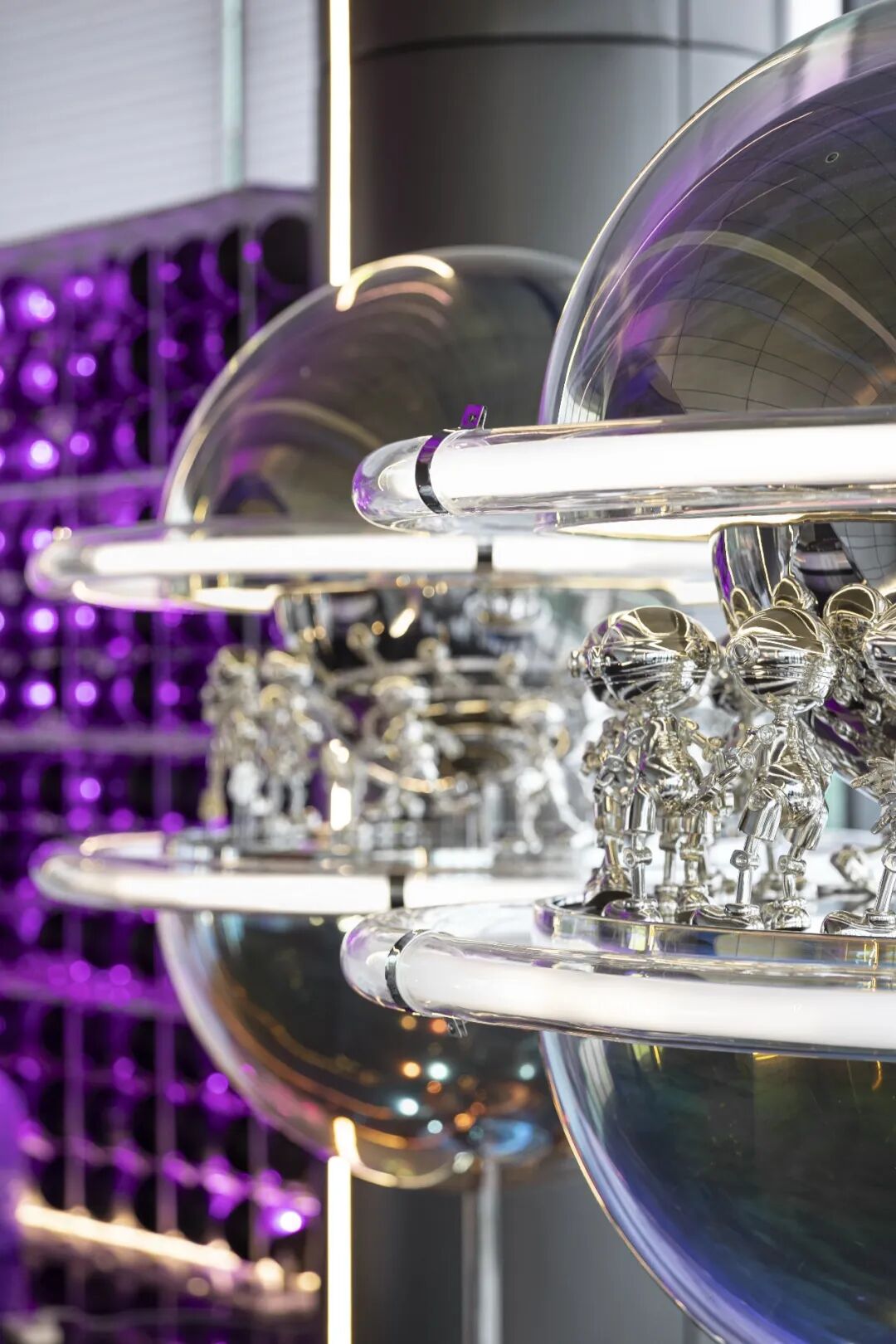 At night, it is a bright river of stars; During the day, it's unobstructed. Science and technology are integrated into life, presenting a multidimensional and interactive way of life. The LED dynamic beam with natural orbit as the design origin of the ceiling rotates continuously with the central axis of the island as the core.