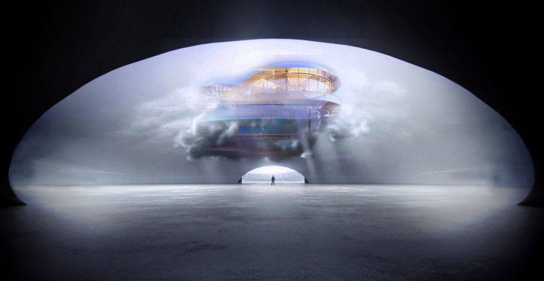 在拉普達(Laputa)的天空之城中,承載著人類共通的心聲和情感。陸河中信森林湖花園,懸挑結構的建築體下,遠觀或近看,它是一座完全懸浮的未來島嶼,代表著科技創新和先鋒藝術。它既是基於未來預判的想像,亦是終將到來的必然。