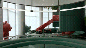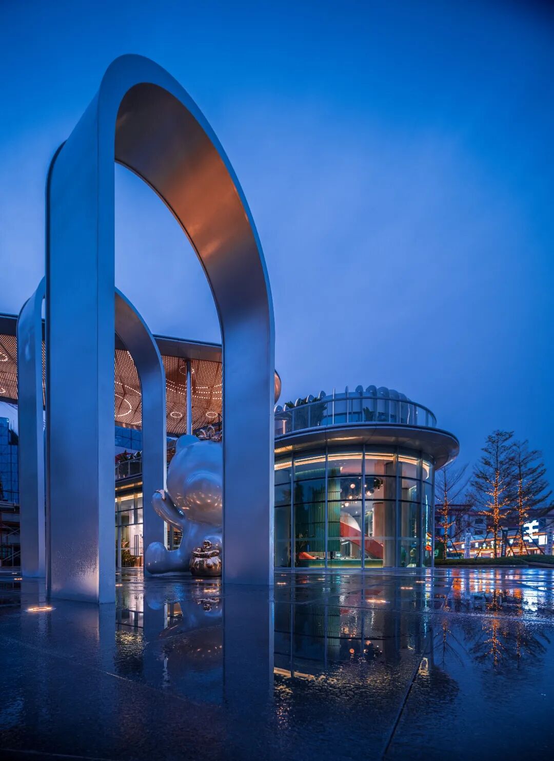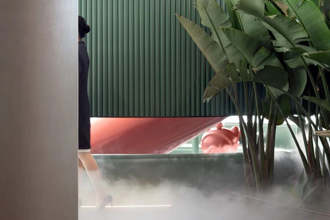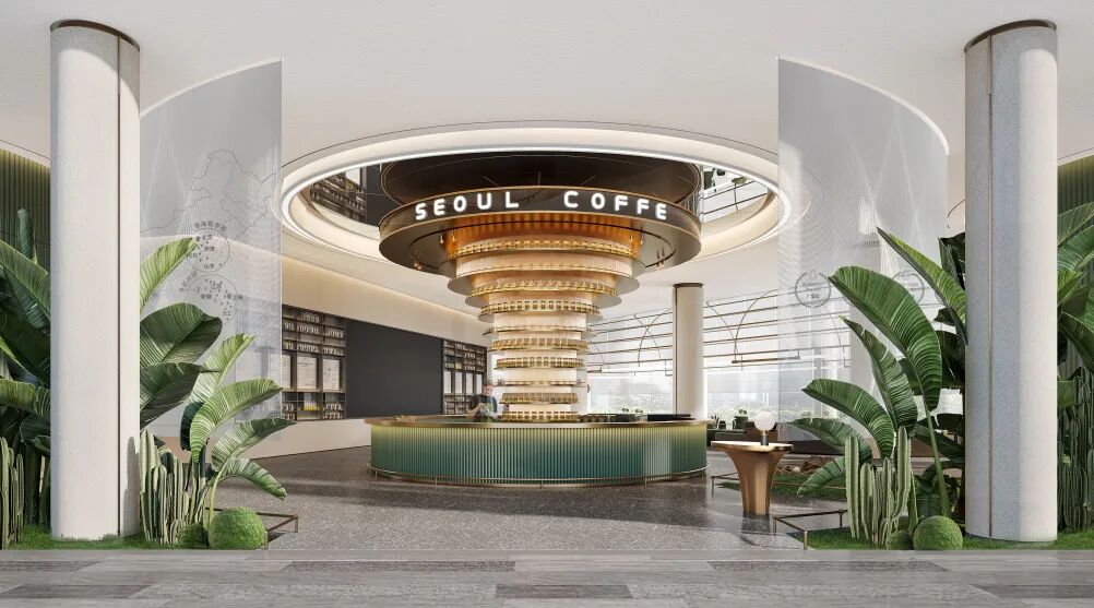 设计团队围绕城市的自然属性,创新性地首次将大片的天堂鸟热带雨林植物移入到室内空间,构建全新的生态系统体验馆,释放自然界的能量与空间的微妙平衡。同时,通过引入旭辉Cifi-Coffee咖啡馆品牌、旭辉小熊IP的潮玩元素,意在从品牌互动性方面将空间打造成一座兼具自然场景和生活体验的真实社区场所。