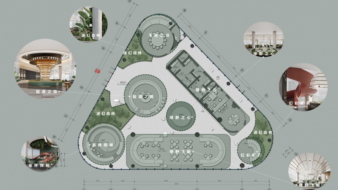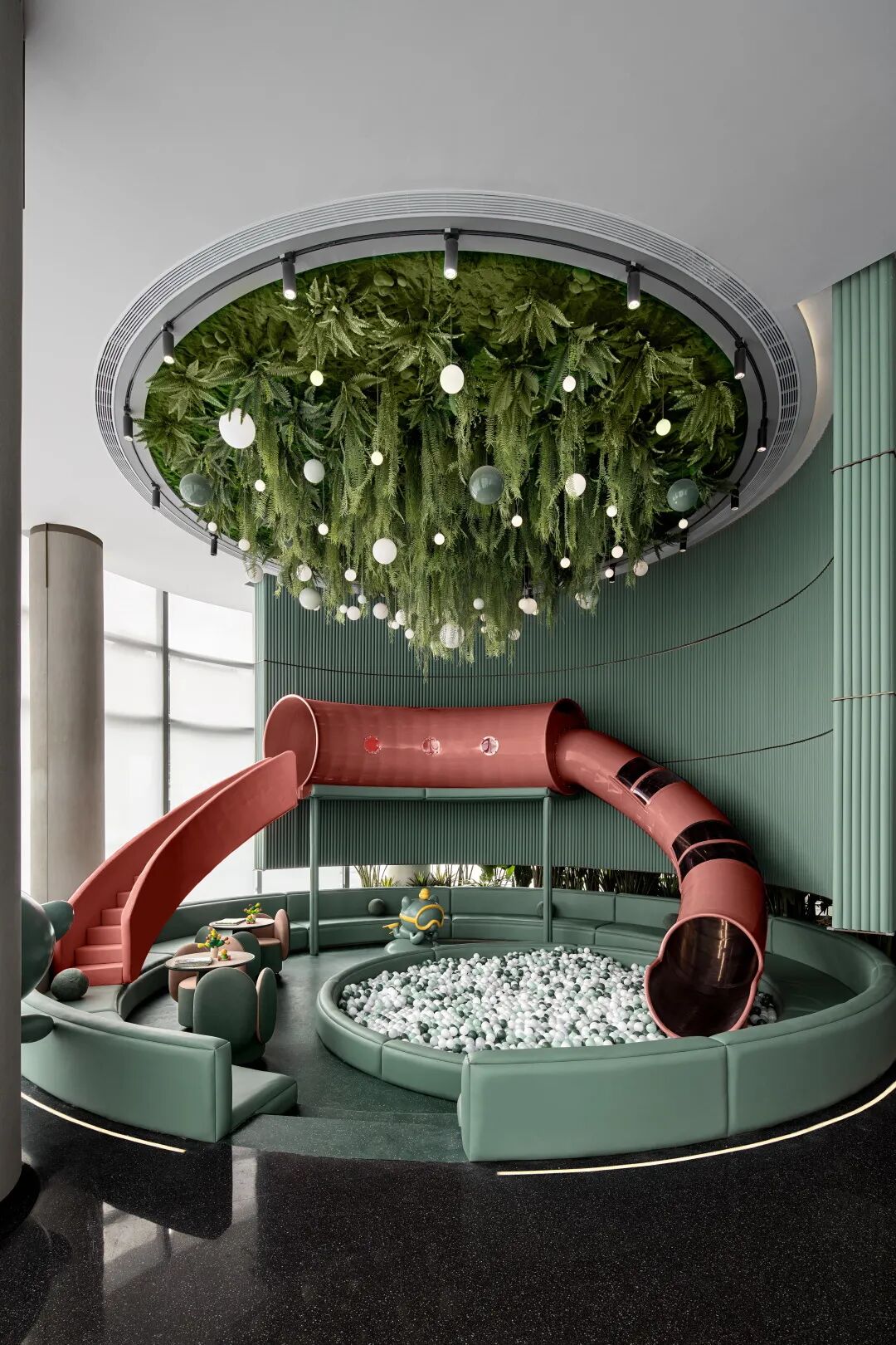 自然是人类永恒的主题,设计在儿童区以探索自然为主题向儿童科普自然科学中各类自然知识,以空间体验为教育导向,天花的自然之意增加空间意趣,让孩子体验到多重空间的丛林之乐。