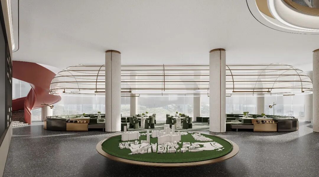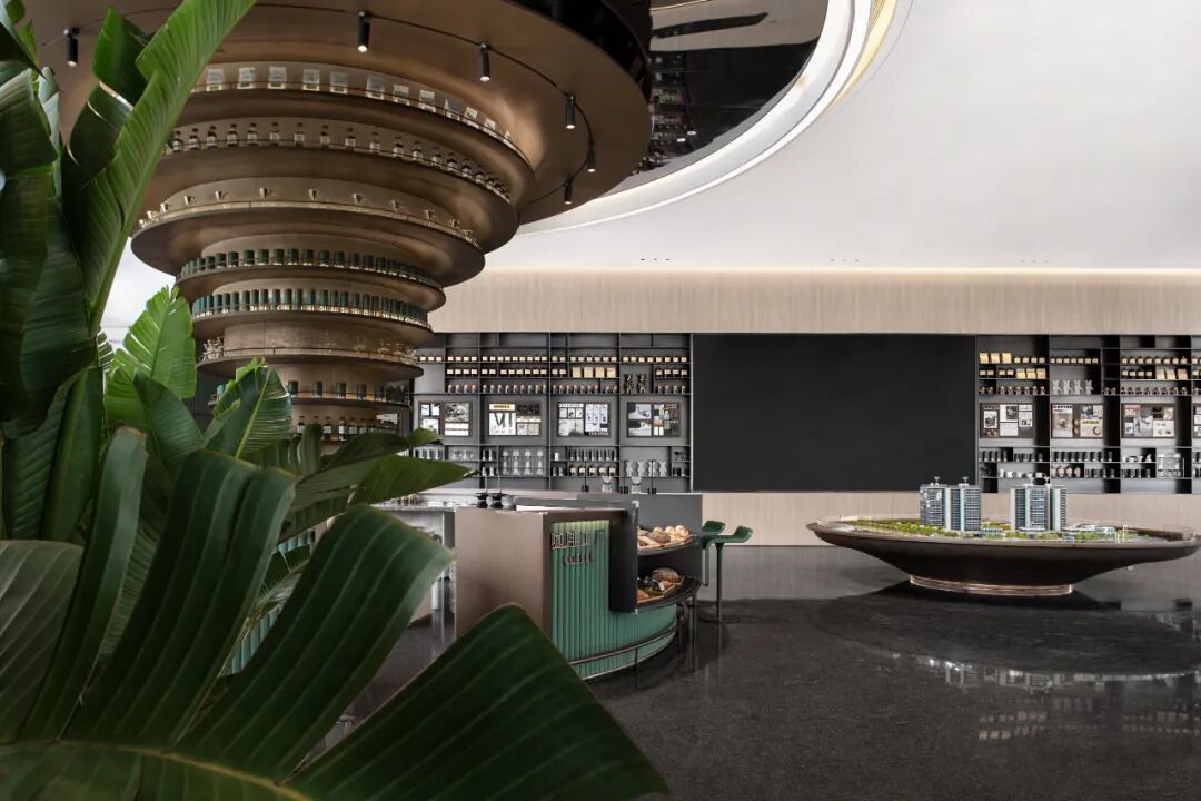 沙盘区以圆融形态,彰显东方韵味的大气之美,表达人们对城市未来的向往,连接水吧空间,实现自然的承接。不是焦点,却可以成为空间里恰到好处的点缀。