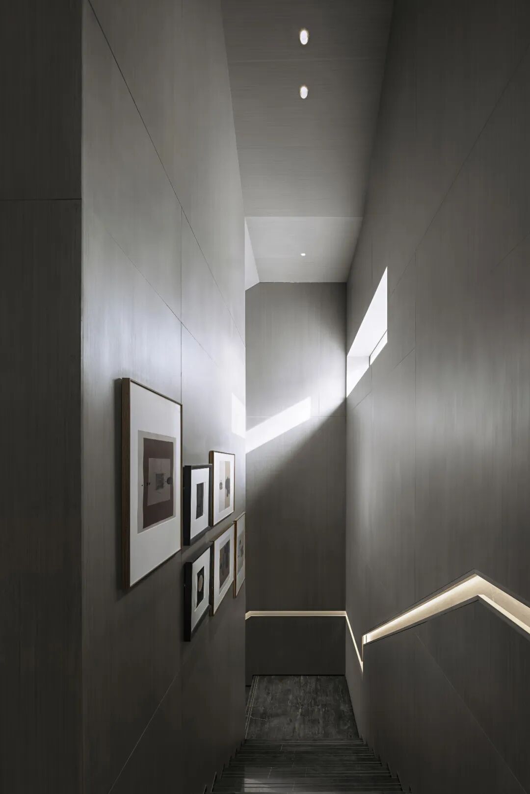 下沉庭院空间错落有致,通过飞桥的连接形式以感受半空状态的院落氛围 行至下沉庭院则能近距离的与自然景观亲近,通过建筑来过渡不同的庭院体验。