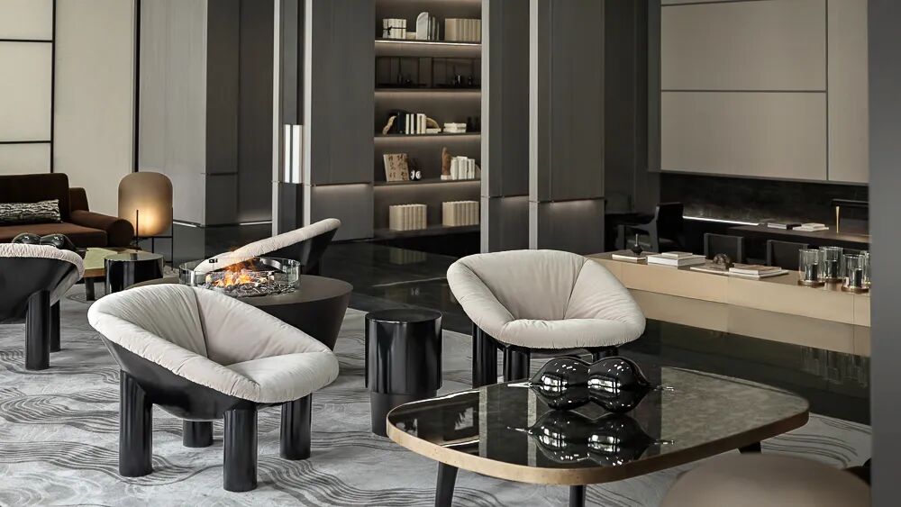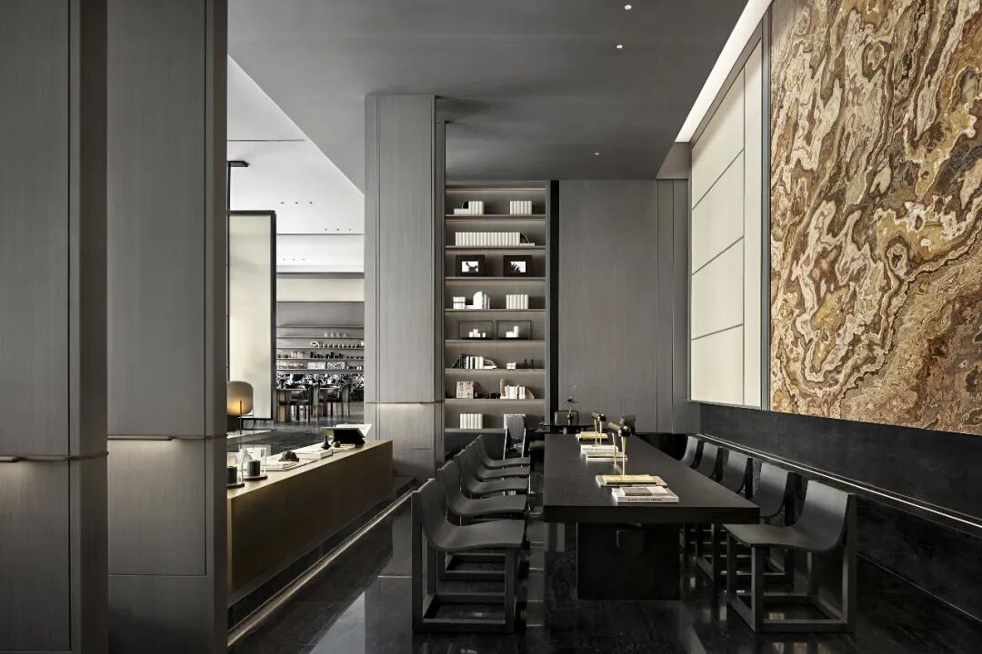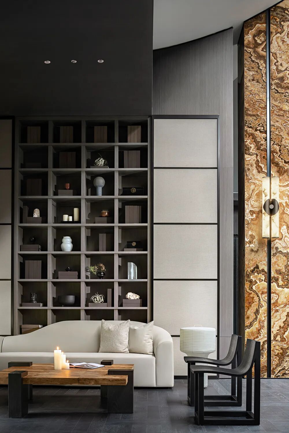 老虎玉石材装点出自然写意,灵动洒脱的东方气势,现代极简设计与之交融,去繁复,留风骨,一场传统东方文化与现代生活美学的碰撞就此开启。