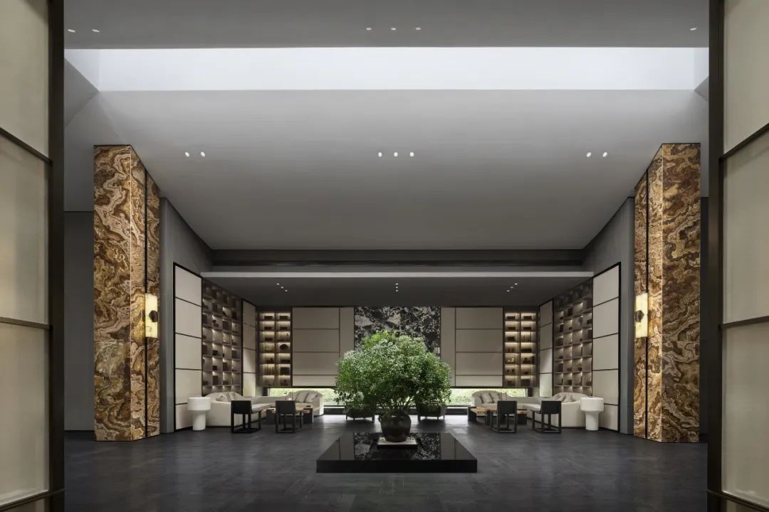 空间设计提炼巴蜀风物之细节,从自然景观和传统文化中汲取灵感,结合现代手法,以形写神,以艺铸魂,再现东方气韵,这是一场追本溯源,探寻未来的东方美学回归之旅,也是贴合都市生活意境的东方神韵的现代表达。