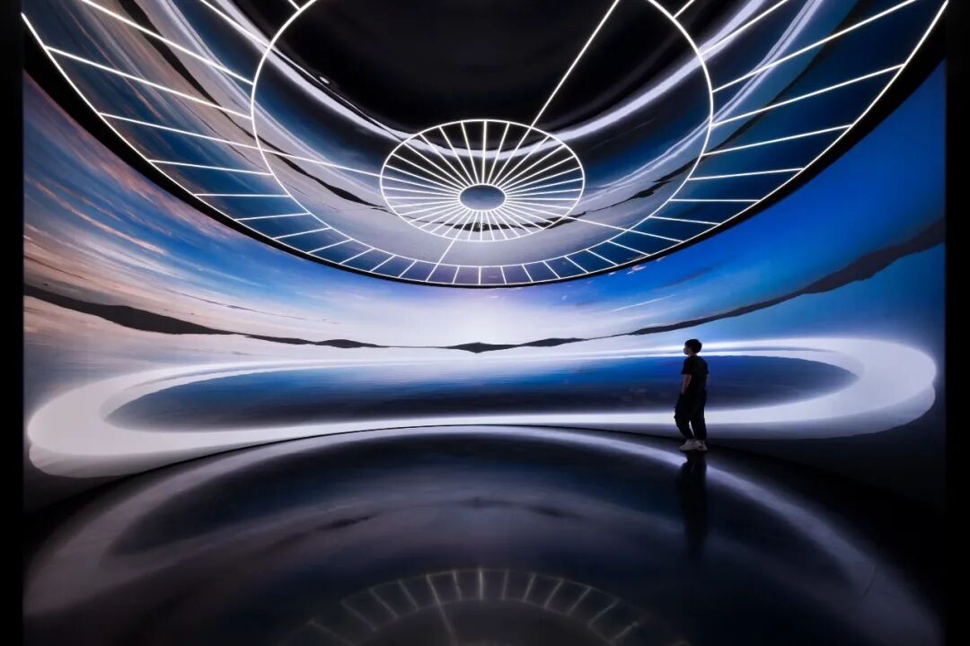 科技体验区在有限的空间内拓展出一个无限延伸的宇宙空间,以互动的形式,