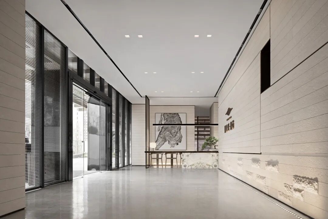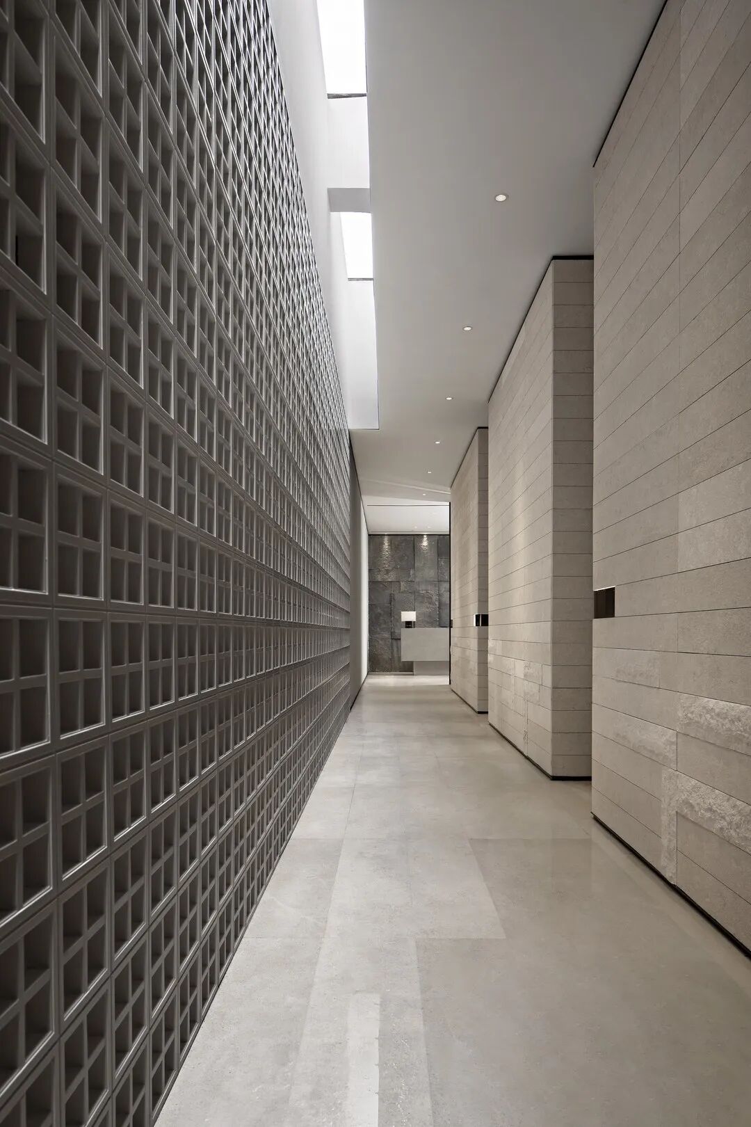 漫步于回廊,现代门襟在界定空间的同时营造出了空间的错落感、层次感,自由中呈现出东方的仪式感,让人感受到空间的尊贵与包容。