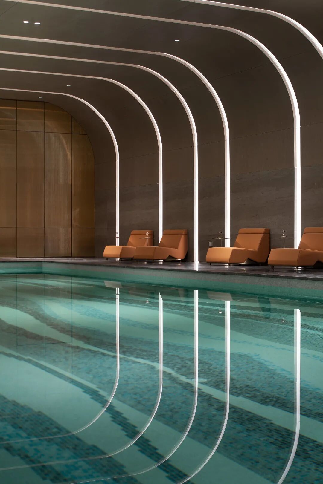 温暖淡雅的大地色奠定低调沉稳的空间基调,金色融入镜面元素使其更加精致奢华,在光影的投射下形成丰富的视觉效果,柔和的曲线,不繁琐,不刻意,却淋漓尽致地呈现出相应的仪式感和品质感,丰富又灵动。