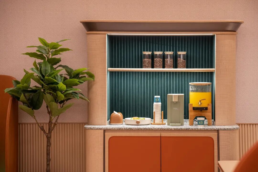 从酒店业主投资者的角度出发,桔子3.0也通过坪效及运营效率的提升更大程度实现降本增效。酒店提供全套标准化设计解决方案,产品定位精准,品牌主张清晰,固然可以保证产品及体验的连贯与流畅。但另一方面,这也客观程度上限制了酒店运营团队对于空间场景的收益转化。针对除客房外的公共区域及空间,品牌需要从设计端出发,通过多场景的灵活切换,以实现坪效的提升。