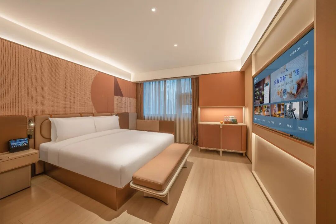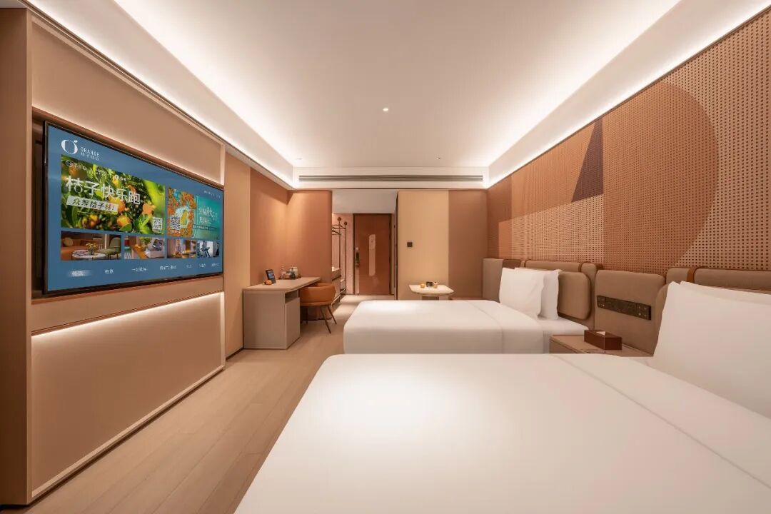 借用周光明先生的话说,“中档酒店的定位决定了它可以更大程度回归酒店住宿功能本质的价值传递。结合选择中档酒店客群的需求,我们尽力提升他们在客房空间的体验及舒适度。”举例来说,酒店全部采用金可儿护脊床垫,同时搭配褥子,还原国人DNA记忆中“炕”的体验,给客户踏实安心的睡眠;房间内选择桔子专属定制甜橙天然洗沐组合,从气味中强化“桔子”记忆,同时给到自然的呵护;房间里均配备65寸液晶电视,一键投屏、小度音响智能客控等功能,更符合年轻用户的习惯;针对打工人、创业者灵活办公的“刚需”,房间内会有宽敞的办公空间和宽敞办公桌,让入住更符合国人快节奏生活的“快乐”;洗衣和健身是商务人士出行的痛点,酒店产品将免费健身房、自助洗衣房作为标配,让整个入住流程的品质更加完整。