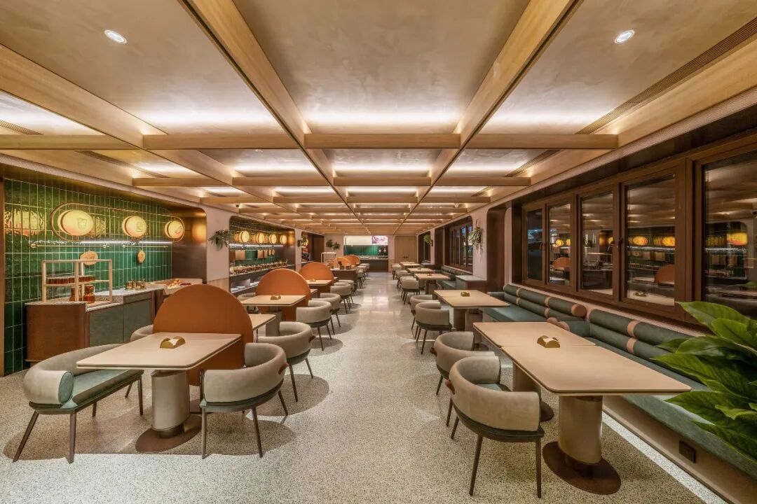 早餐厅设置的卡座兼顾客人独立用餐或社交的双重需求。