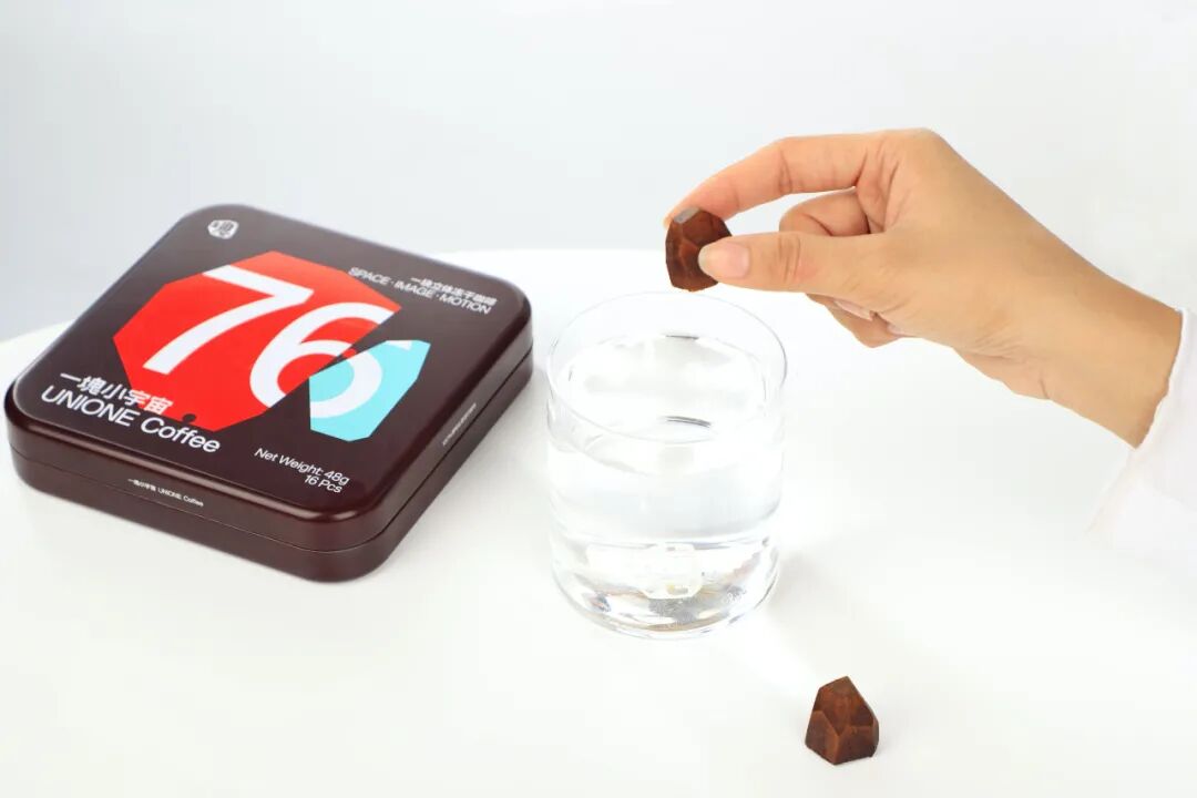 而且,它融化的过程就像一座小冰川,悬浮在水面上,边溶解边下沉,趣味感十足。咖啡下肚前,用奇妙的视觉感打开想象,哪怕是3秒完成的冲泡过程,依旧有着做手冲般的仪式感和乐趣。