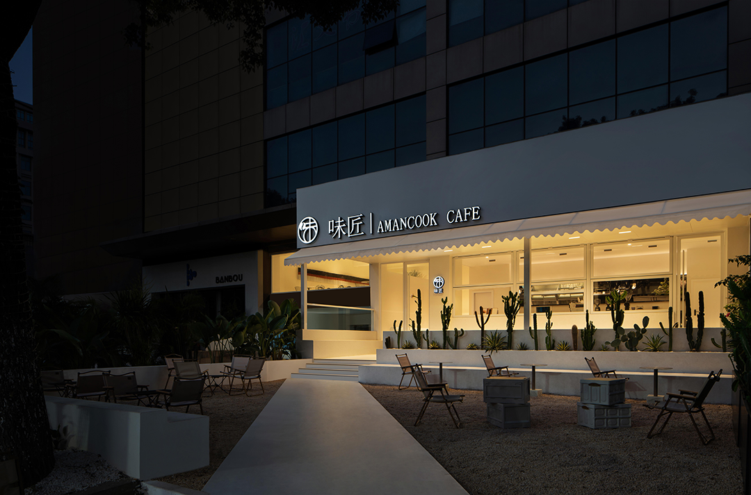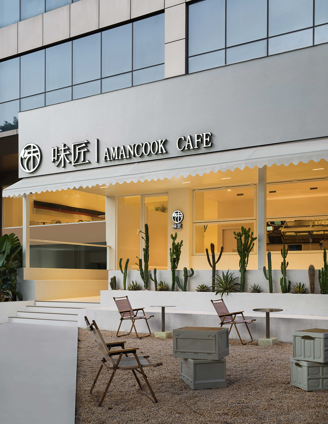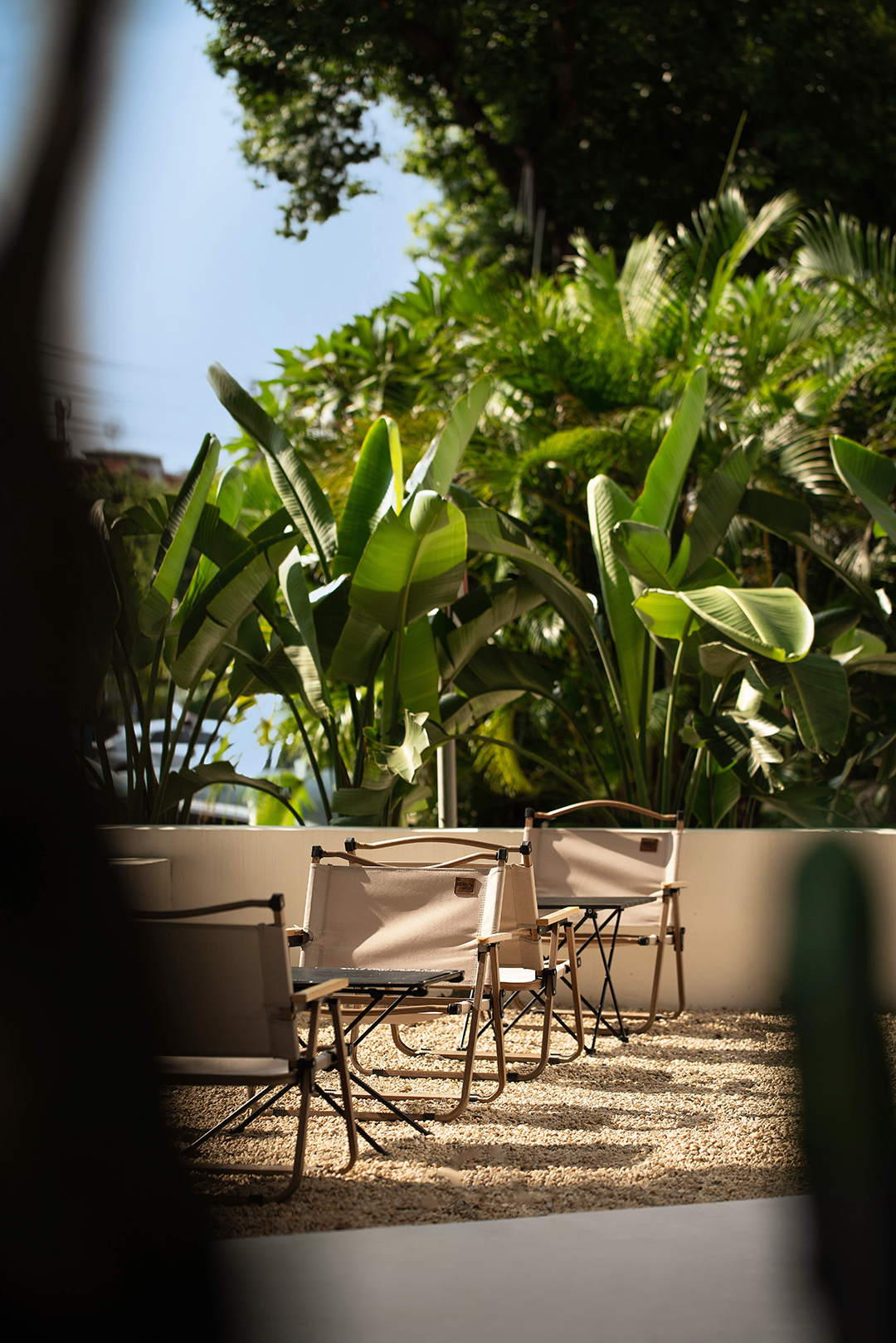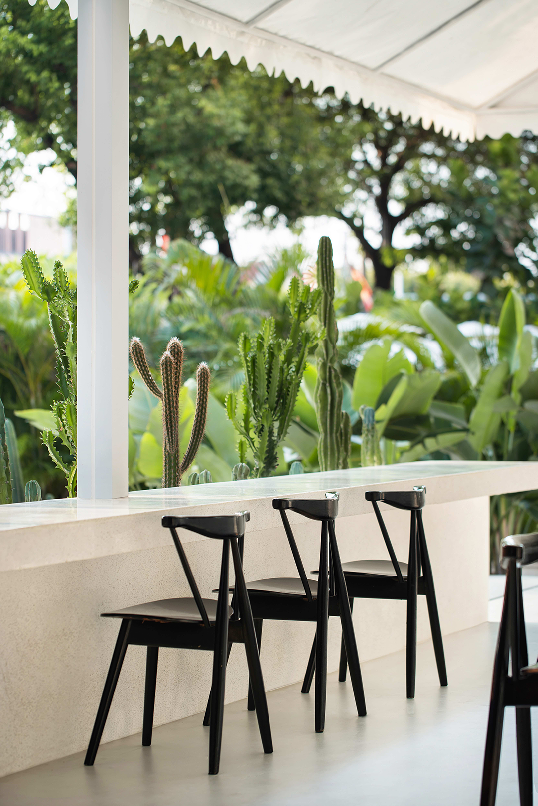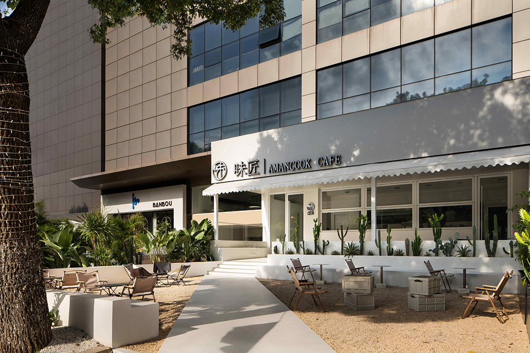 在植物墙的包裹营造下,则以檐下连廊的空间过渡,强烈的参与性,将都市度假的场景融合到街边巷尾的日常中,营造出跨越地域与空间的丰富对话。