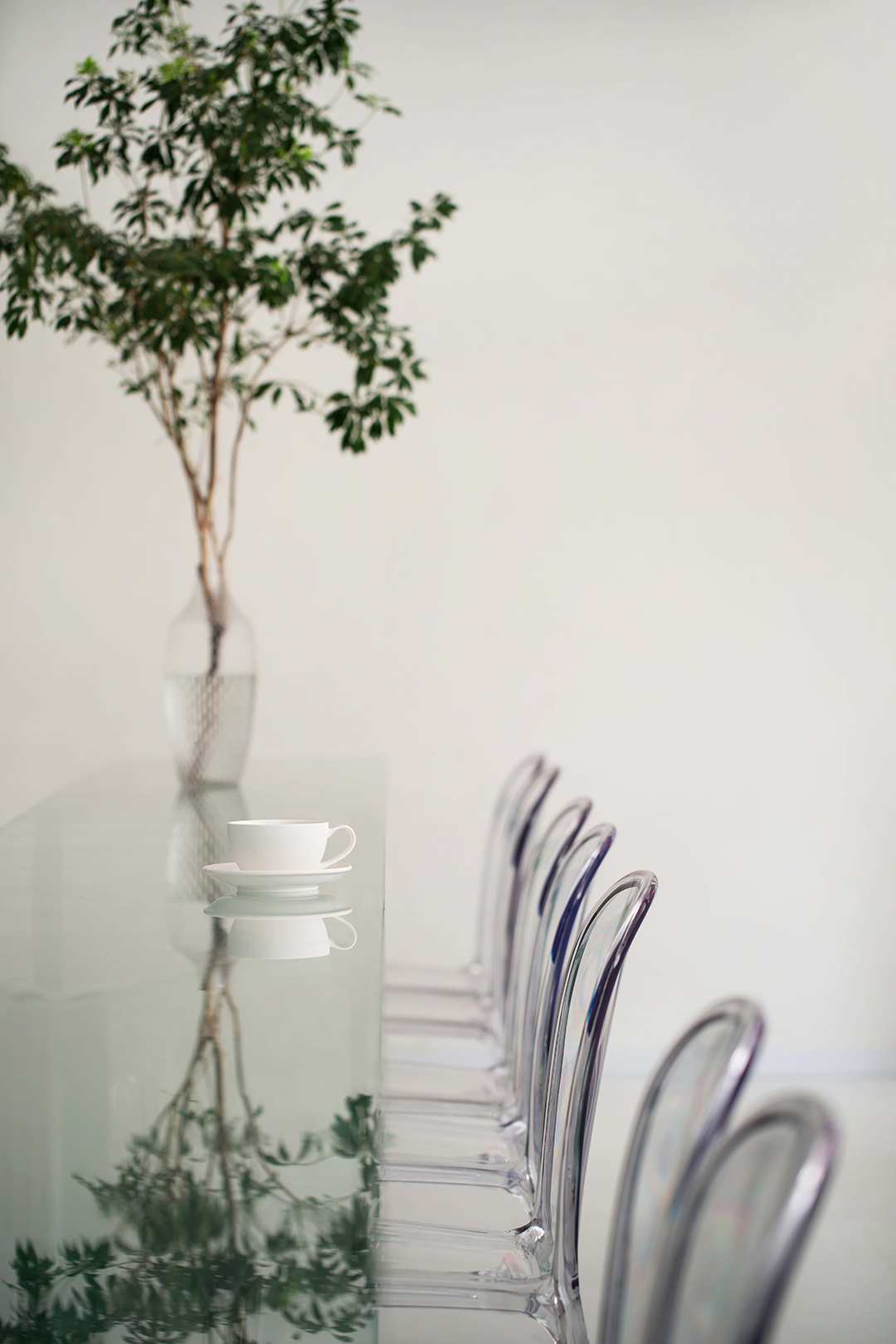 20世纪30年代起,随着机器革命的进步,玻璃被广泛运用到家具形体的塑造中,轻巧便携却可以深刻改变空间气质的呈现方式。