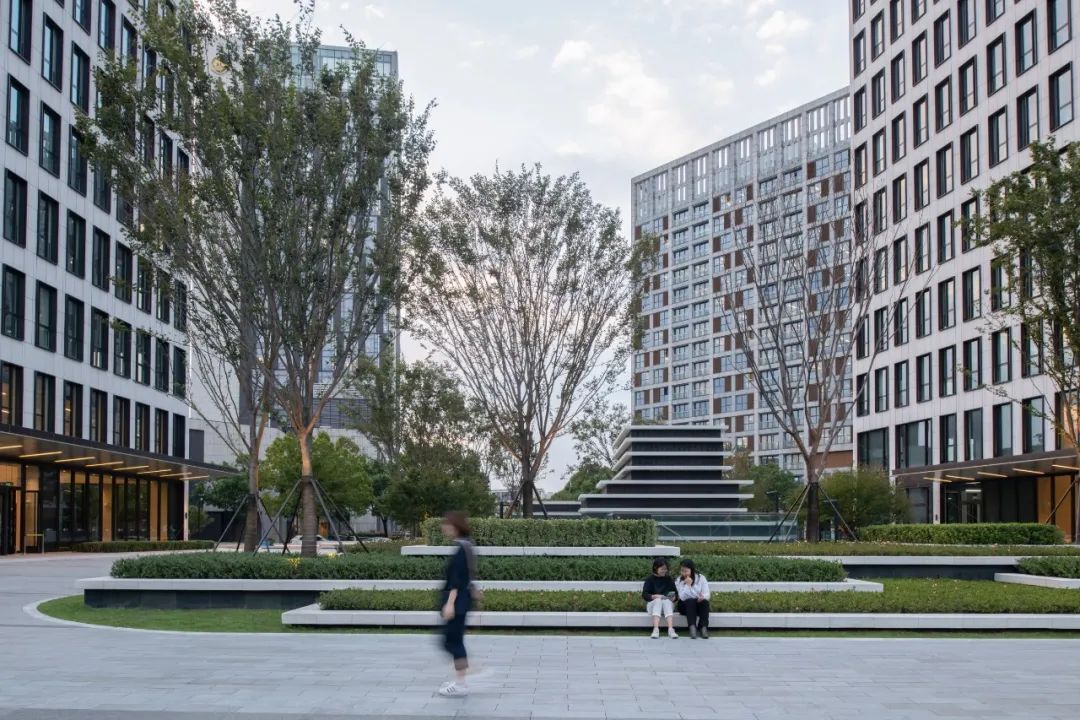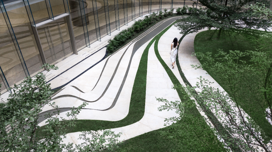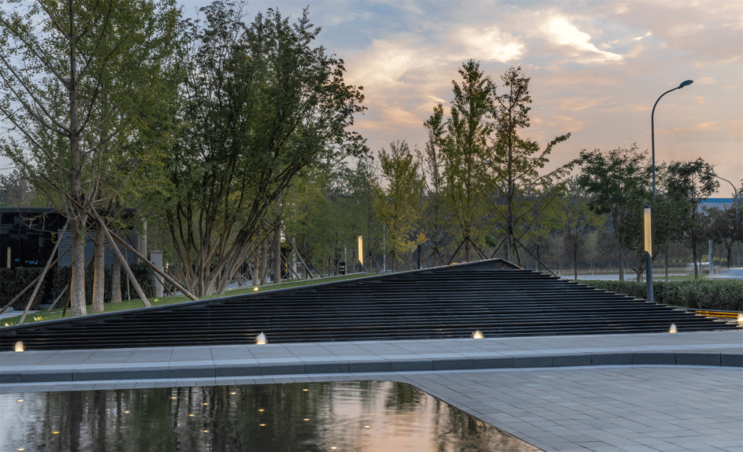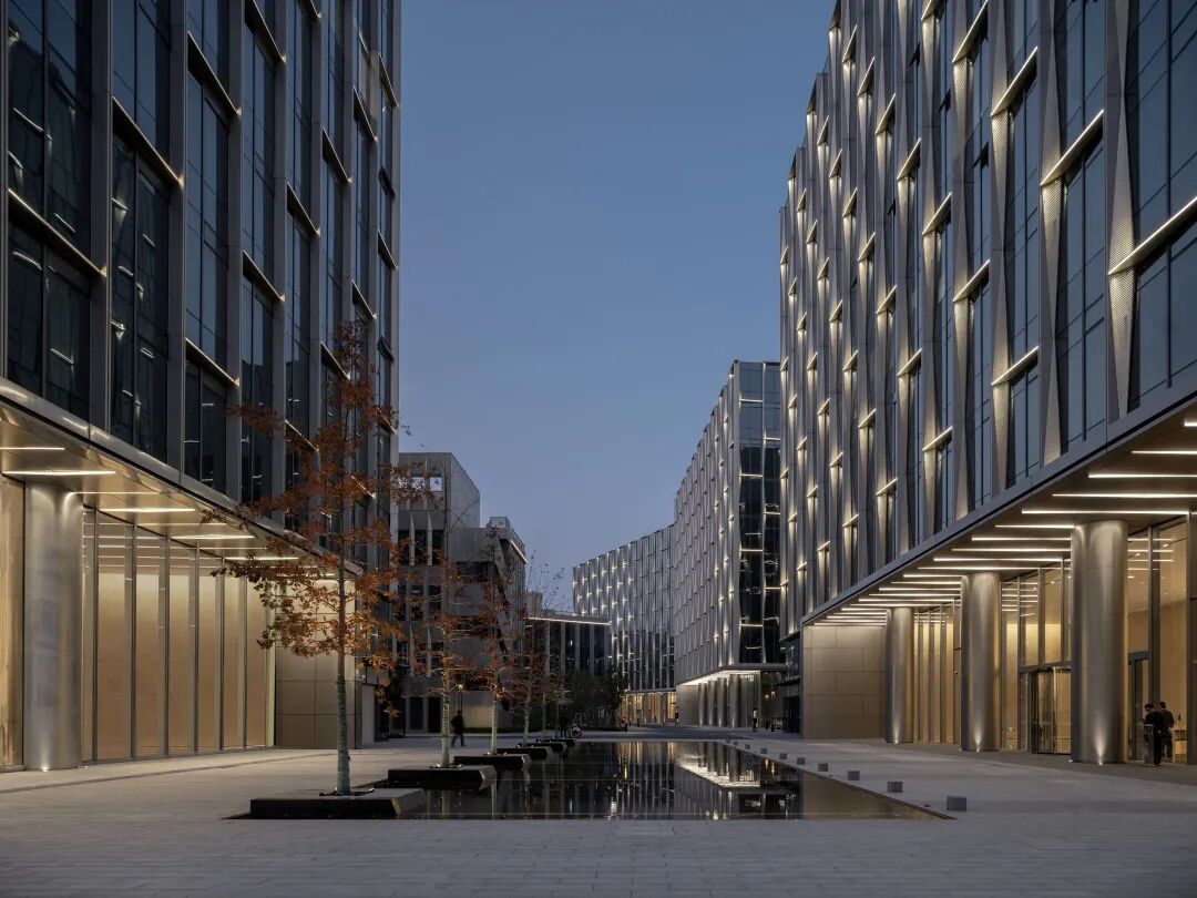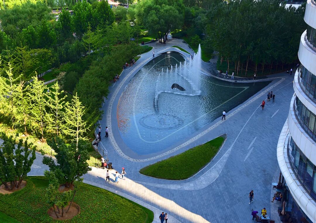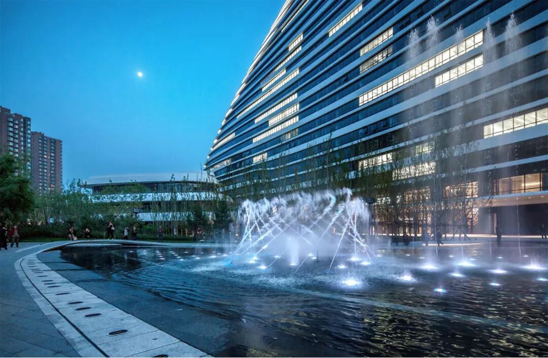 BAM负责了融创集团新的办公大楼的景观设计,用包含长条形人工水池的细长型中心广场将两个分隔的地块统一起来。景观设计如同洋葱一般,围绕着核心的中央广场层层展开。