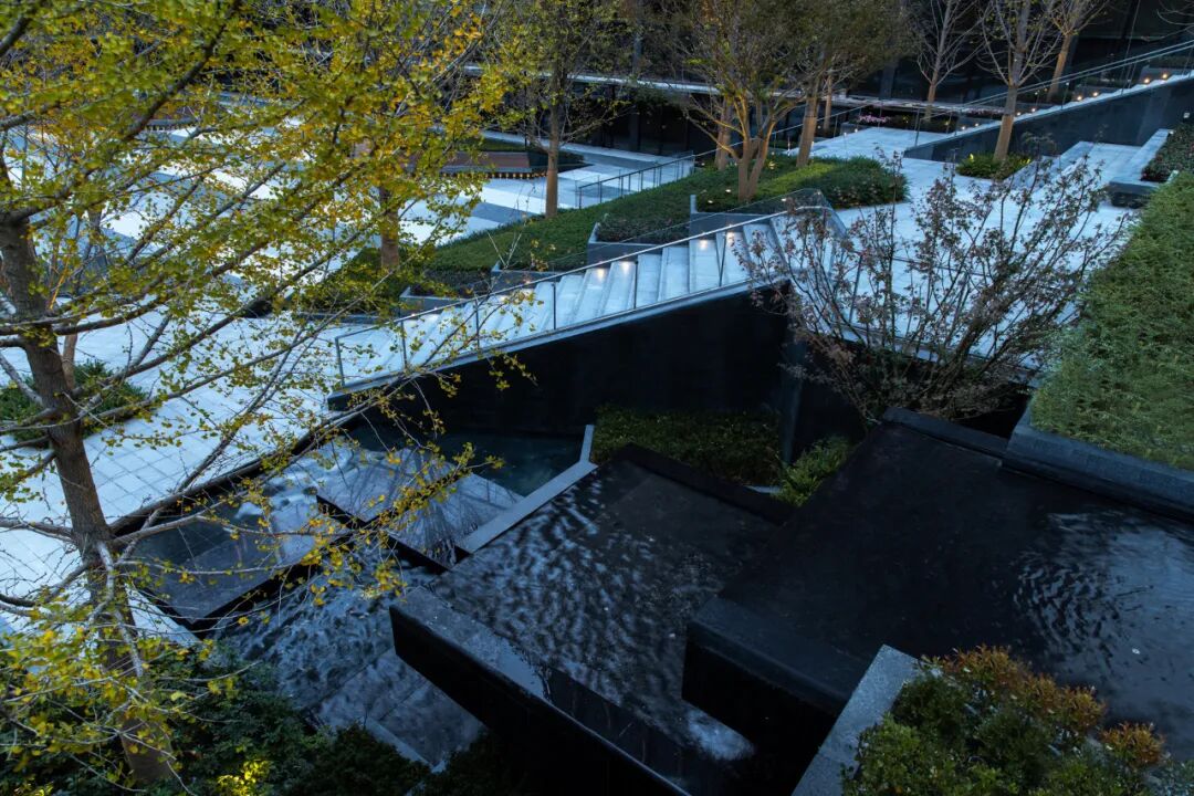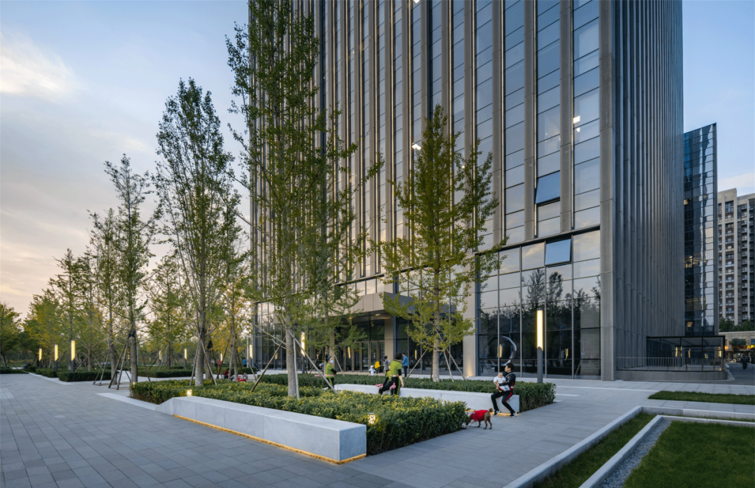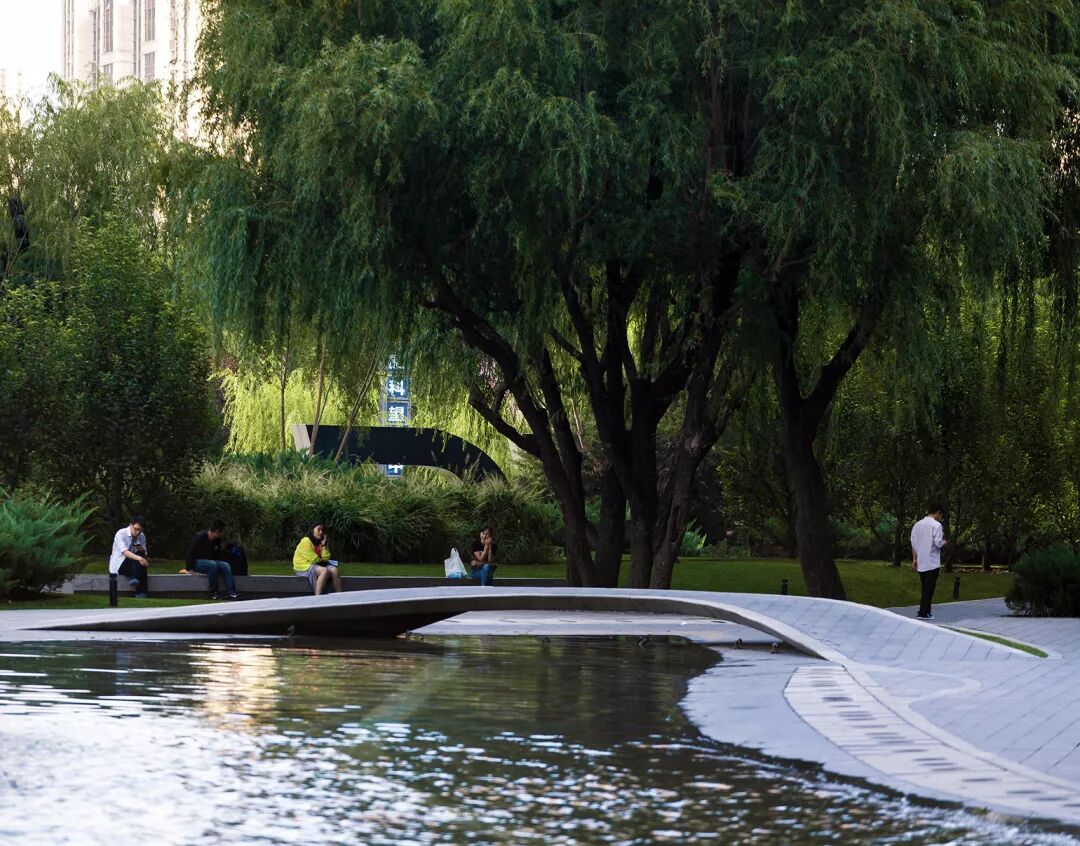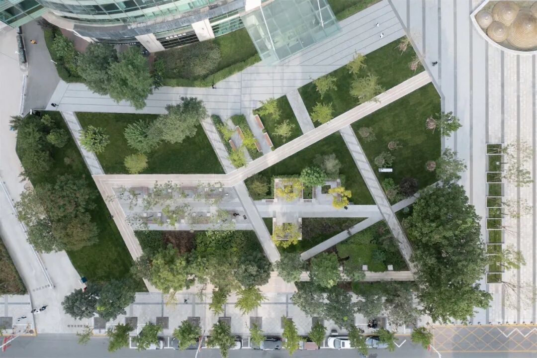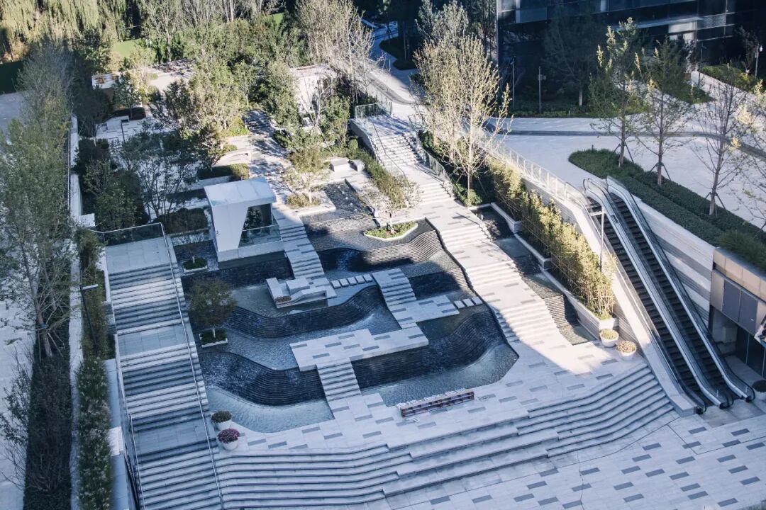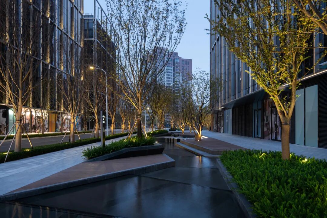 BAM负责了融创集团新的办公大楼的景观设计,用包含长条形人工水池的细长型中心广场将两个分隔的地块统一起来。景观设计如同洋葱一般,围绕着核心的中央广场层层展开。