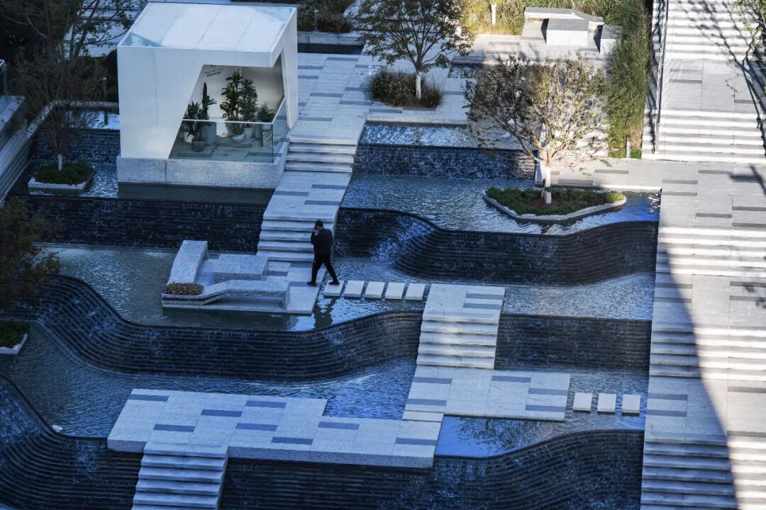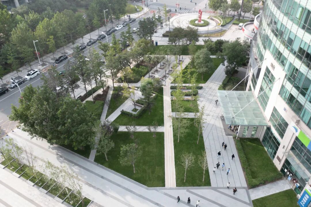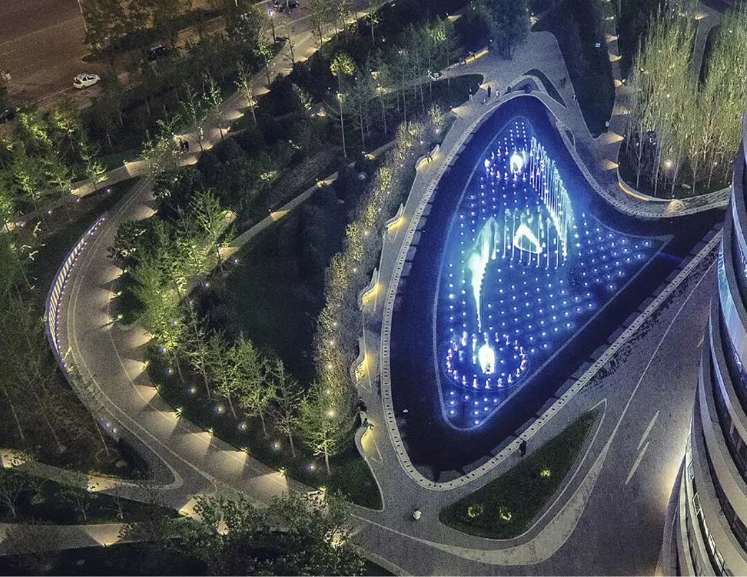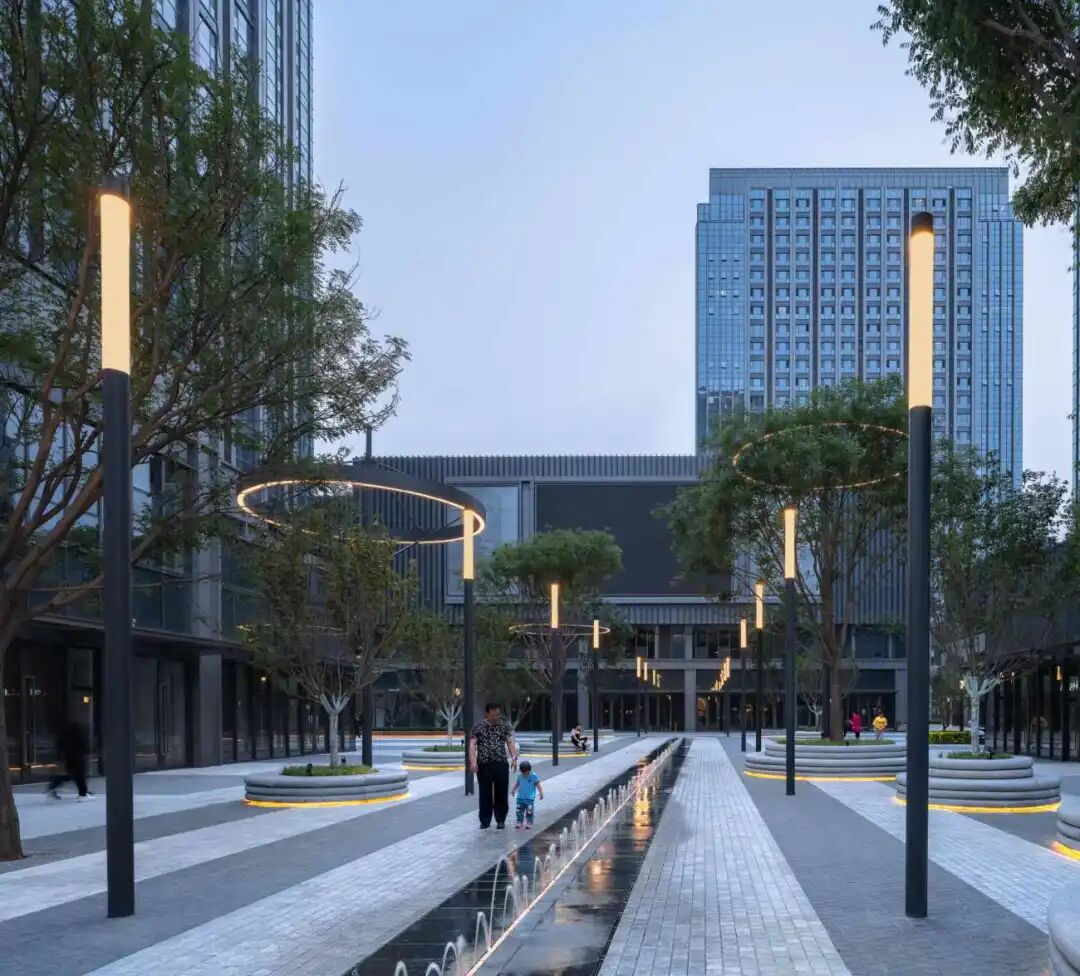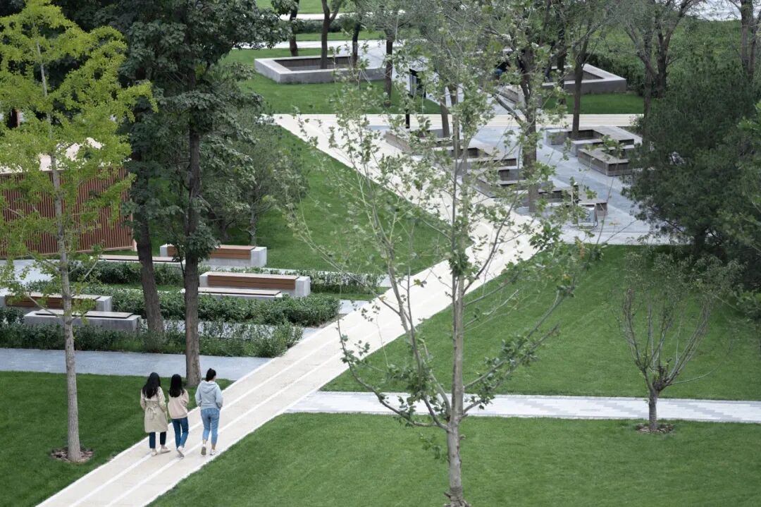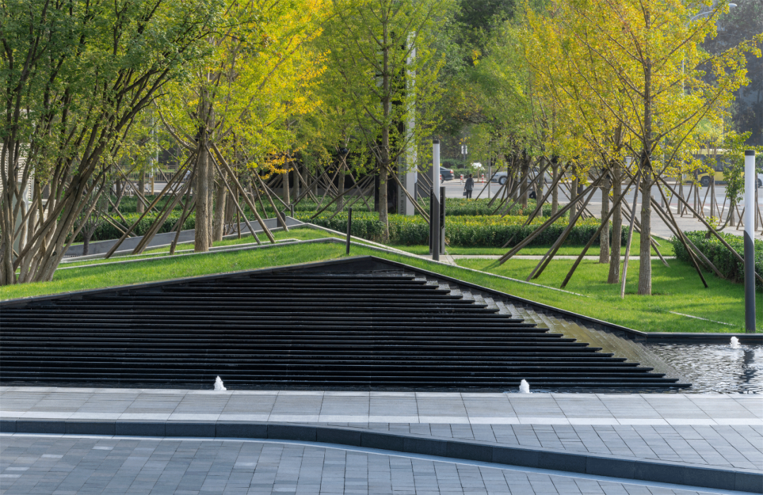 BAM负责了融创集团新的办公大楼的景观设计,用包含长条形人工水池的细长型中心广场将两个分隔的地块统一起来。景观设计如同洋葱一般,围绕着核心的中央广场层层展开。