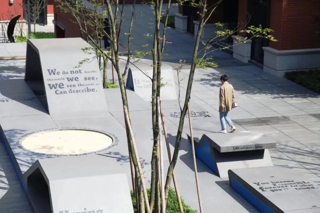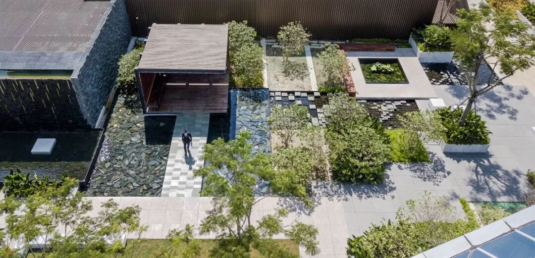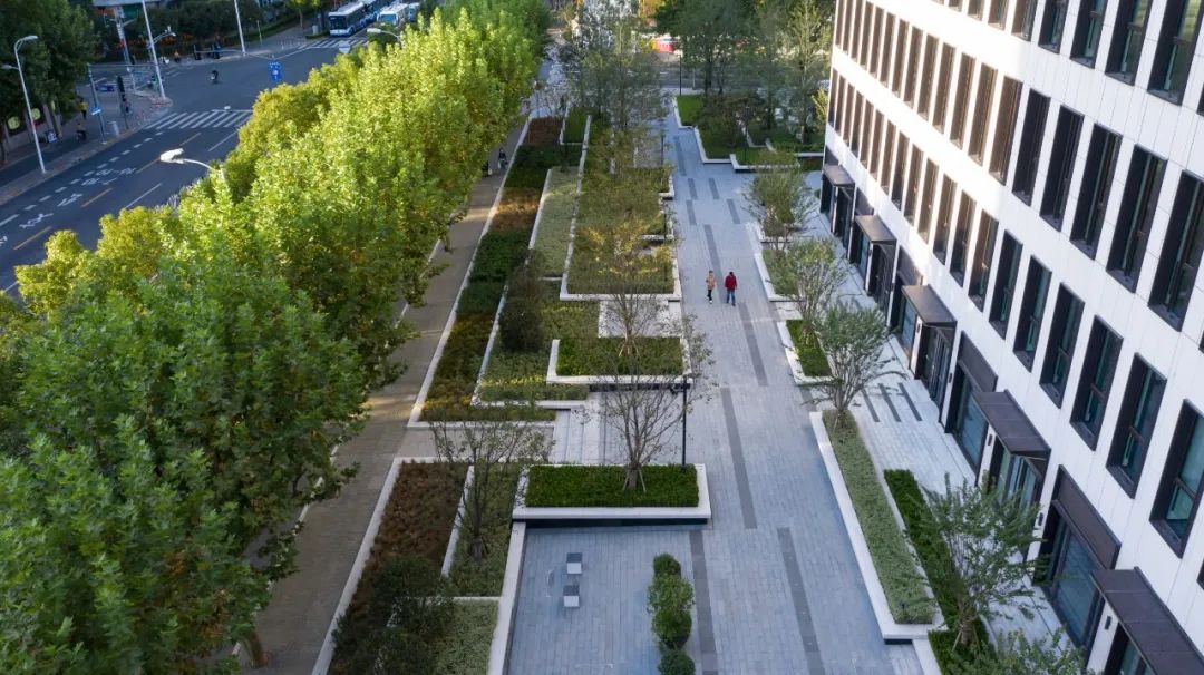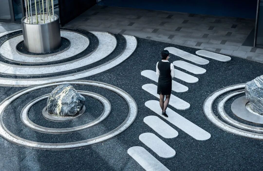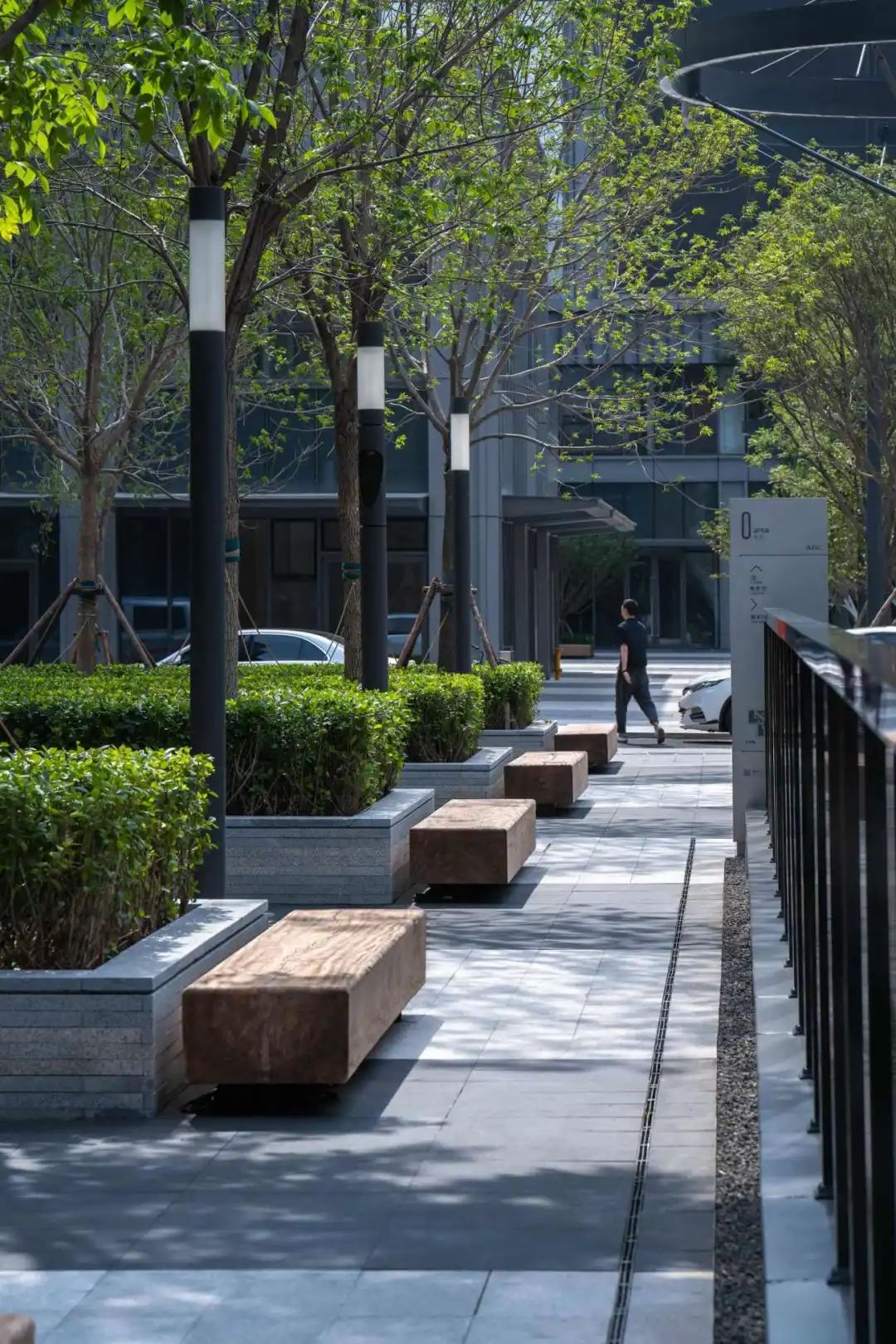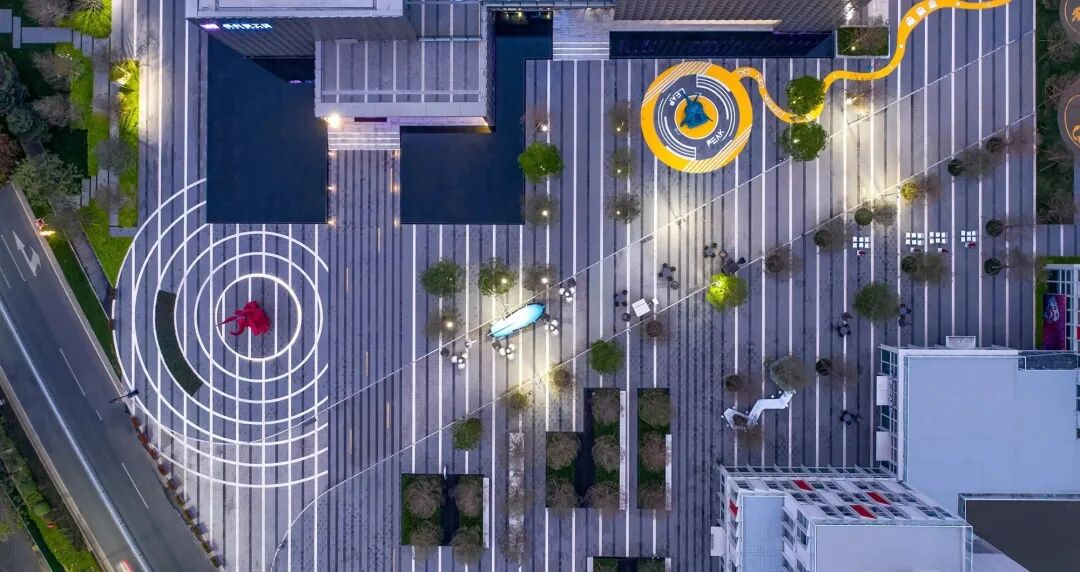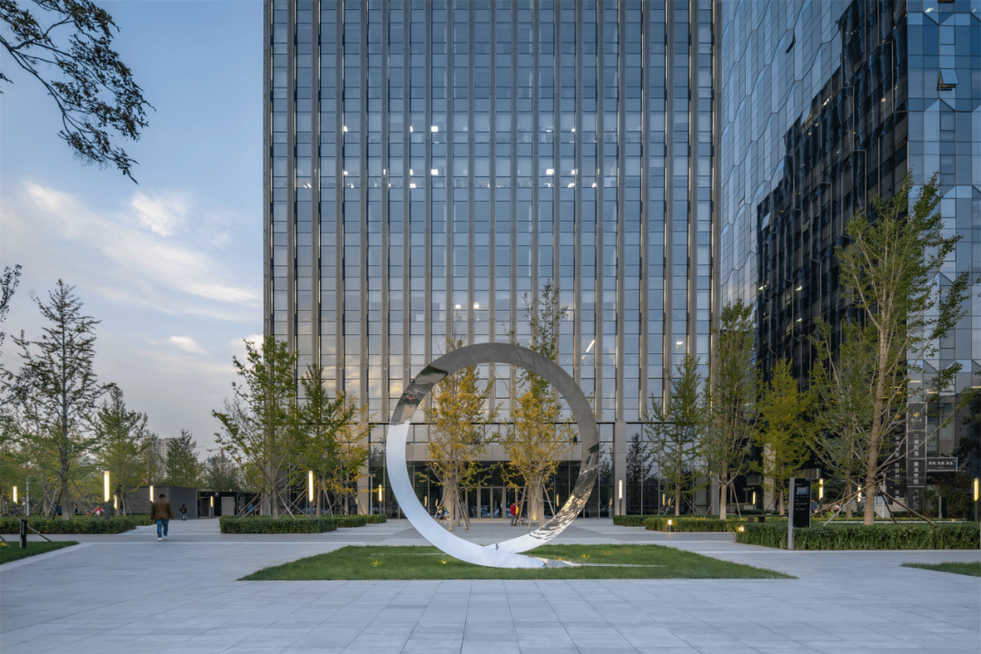 作为中西方文化与产业的集中交流地,景观设计以“融”为主题进行延展。首先,在分析受众群体的行为习惯与性格特征的基础上,赋予丰富的文化内涵,满足不同文化背景的办公人群。其次,结合人流及行为的规律,最大限度打通场地脉络,将内外庭院、内外建筑、内外空间充分融合。
