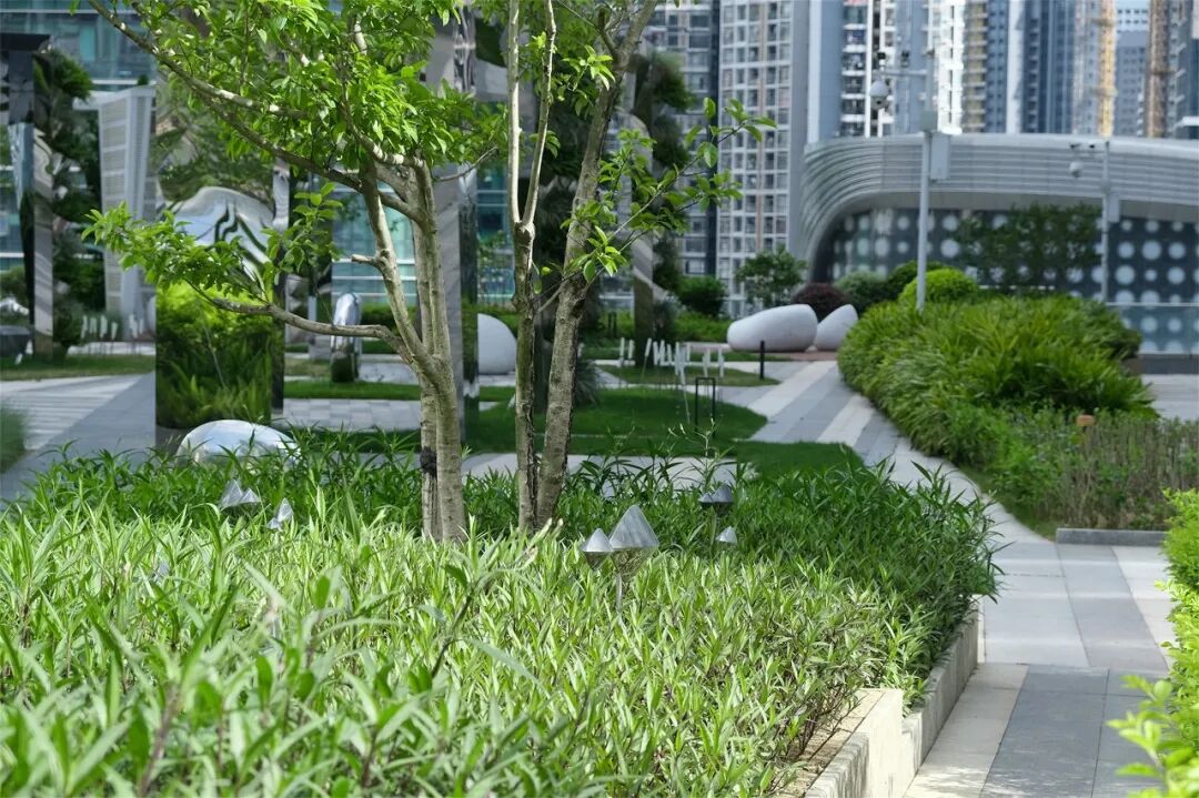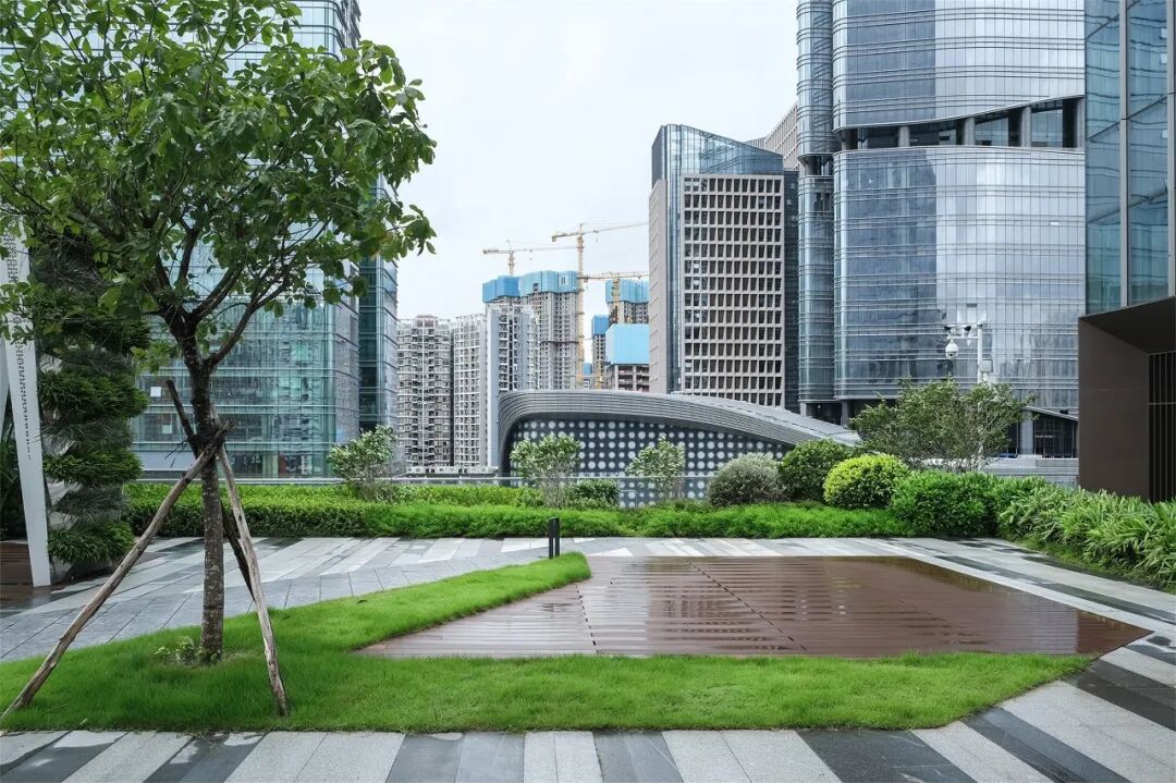 产业服务中心是金湾航空城核心区重要的公共服务平台、产业孵化平台,也是未来金湾的经济、社会、文化中心,为助力航空城设施完善和功能提升,重塑城市新形象,华发联合阿普贝思,对产业服务中心进行了景观海绵一体化建设。
