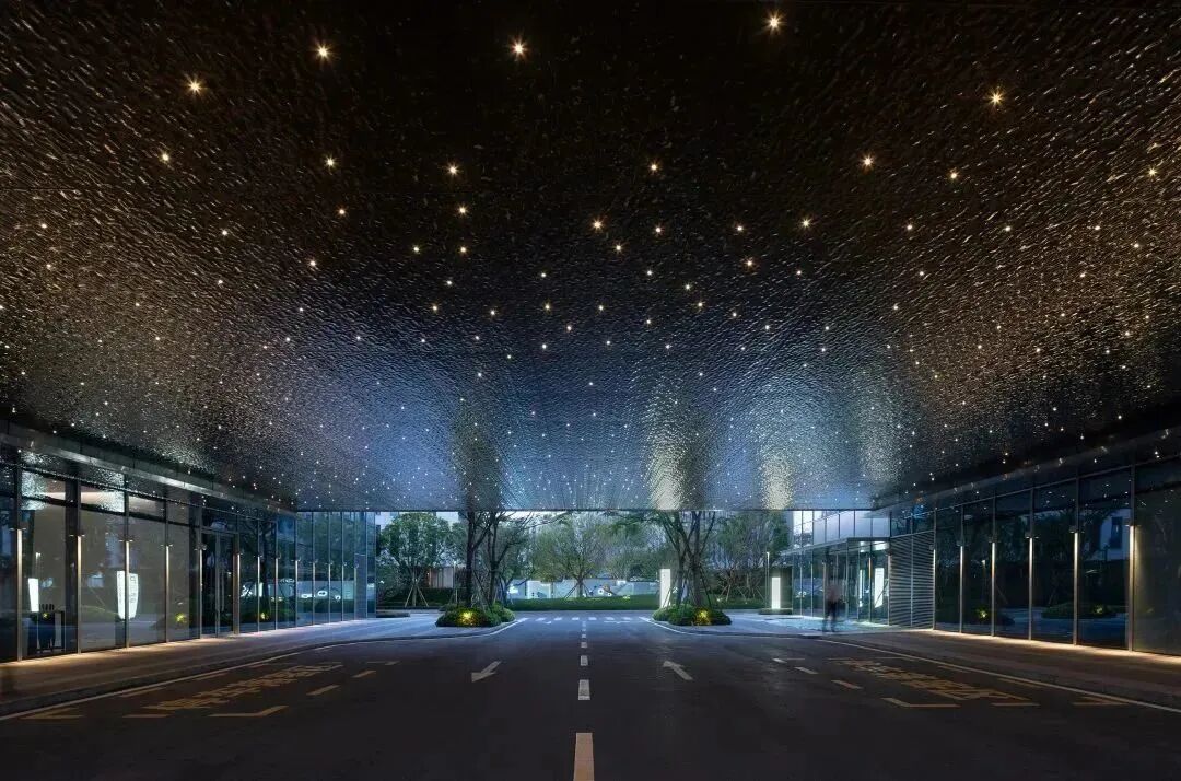 ▲入口建筑顶层的海洋星空灯