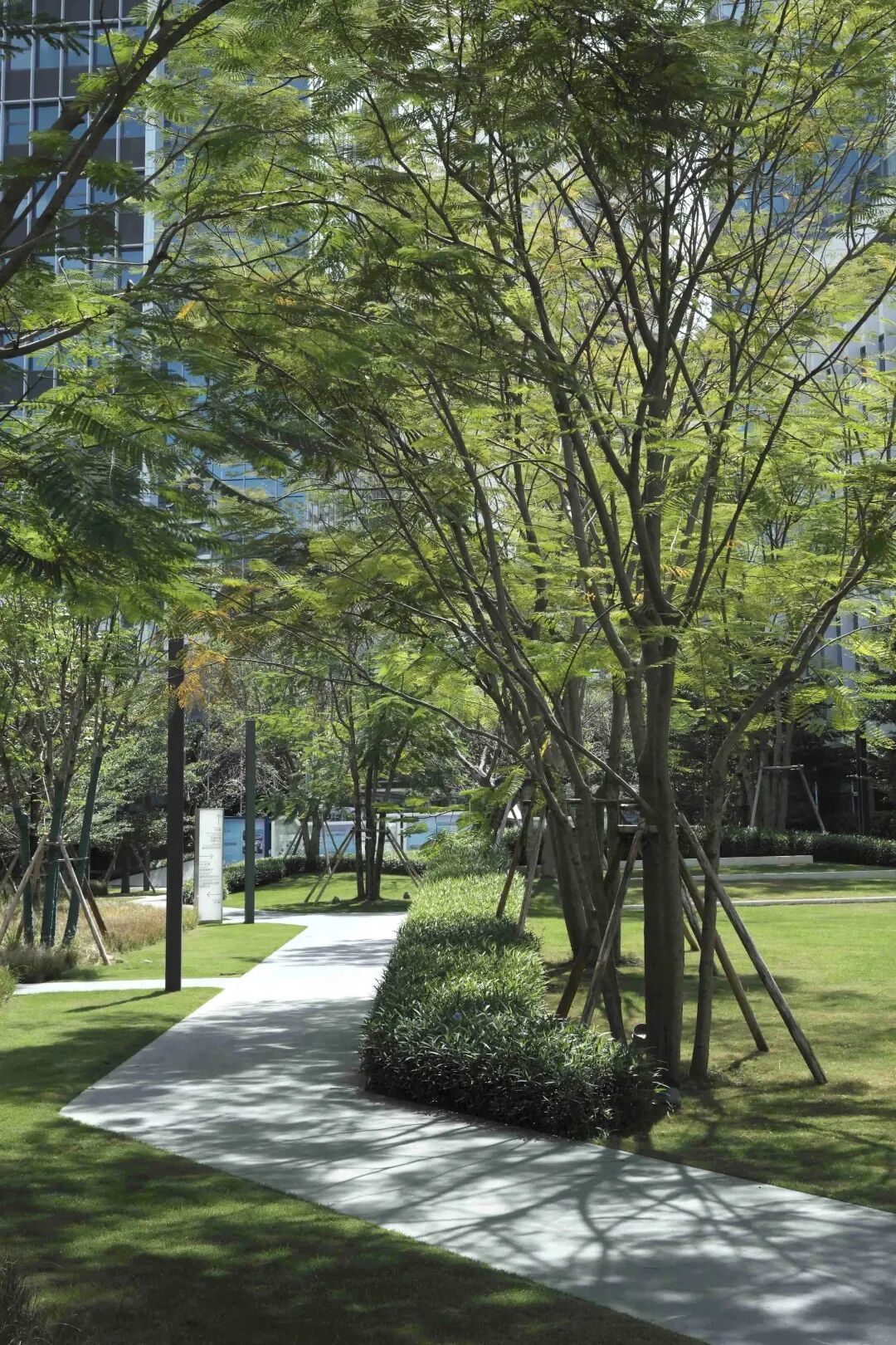 ▲在人行车行入口两端种植标志性凤凰木