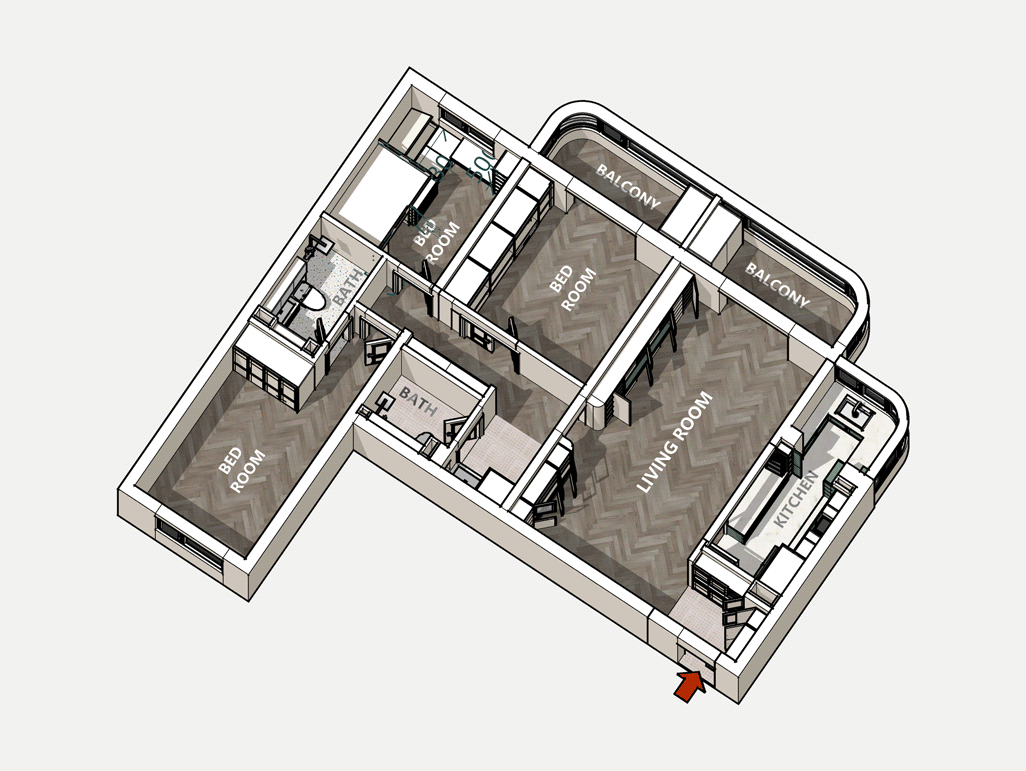 原来的门洞平移,让门口可以放下整面墙(3.3米)的衣柜。