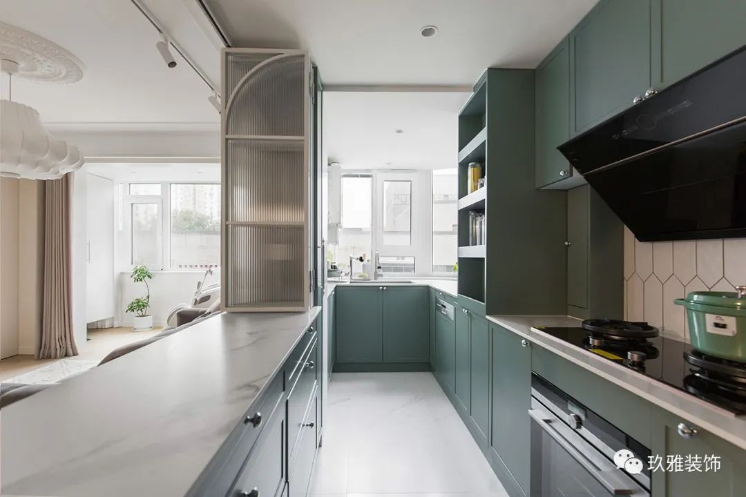 厨房的折叠窗,通过开合与起居室进行着“沟通”。