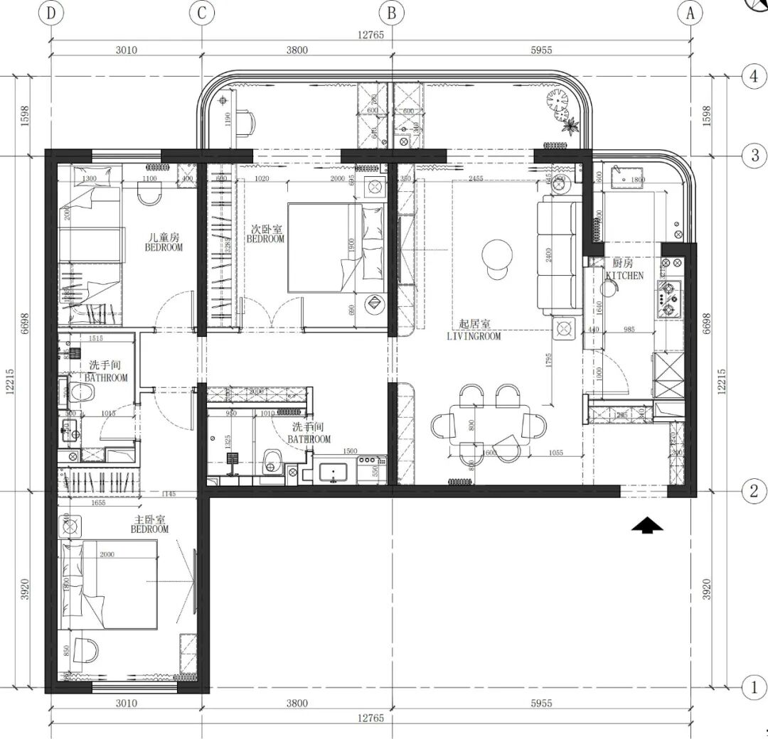 餐椅的曲线,给方正的空间带来了变化与新意。