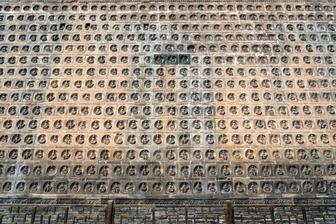 塔身内外壁均镶嵌瓷砖,尤以外壁居多,砖中凹陷成圆形佛龛,龛中有佛像凸起,题材各异,姿态万千。佛像共108种,足足有7000余尊。