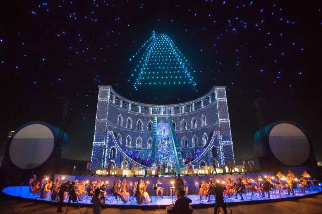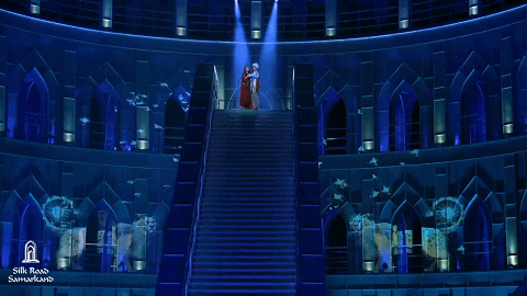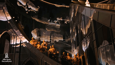 《永恒之城》表演在占地 260 公顷的建筑群中心举行。这场表演以乌兹别克斯坦历史名人 Mirzo Ulugbek 的天文台为基础,在室外圆形剧场内,专门建造了高18米,宽30 米,四层旋转结构的舞台。值得一提的是其主舞台重达300吨,可以说是重量级的主舞台。