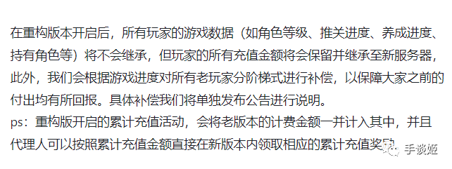 但这“重构版”不保留玩家的游戏数据,只保留玩家的充值金额,也就是说认真玩这款游戏三个月的玩家的游玩时间几乎是玩了个寂寞。游戏虽承诺会进行补偿,但补偿细节未定,重构版上线日期也没有定数,是否能在有生之年玩到尚且未知。