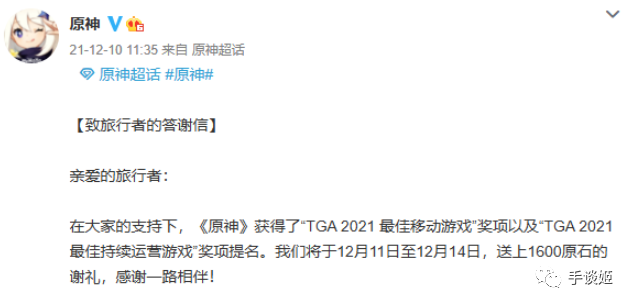 有些姬友可能会疑惑了,《原神》去年拿过这个奖啊?但是TGA没说过拿奖的就不能再拿,《英雄联盟》就获过两次“最佳电竞游戏”。而且原今年的更新了“须弥”的新内容,新东西还是挺多的。