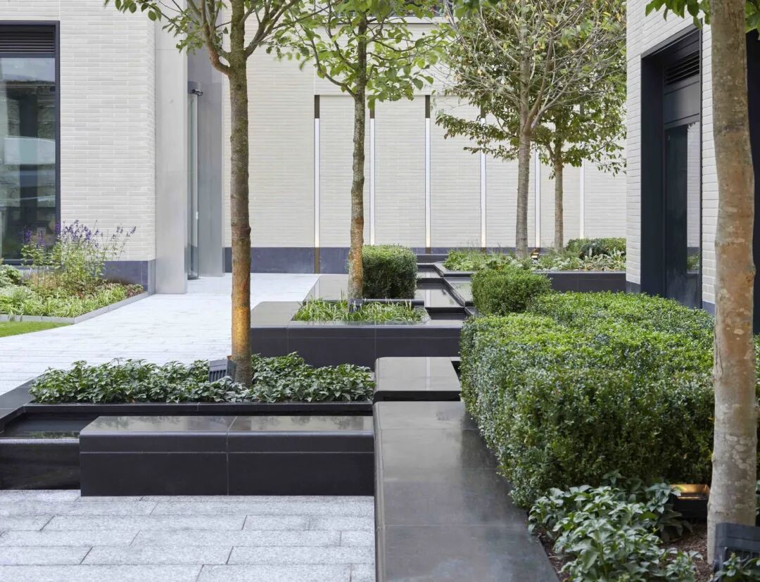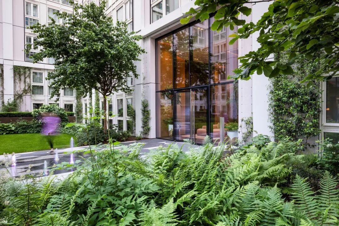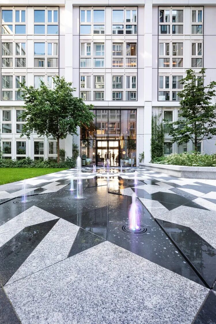 景观设计与福斯特建筑事务所设计的新玻璃顶篷的质感和现代品质相得益彰,同时反映了历史建筑的材料、特色和古典精神。大理石花盆的动态组合似乎漂浮在水幕旁边,水可以穿越整个庭院。
