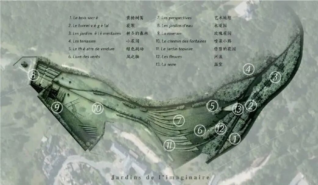 总占地面积6公顷的幻想花园,在1997年竣工。13个主题景点,分布在北高南低落差10多米的狭长场地中。