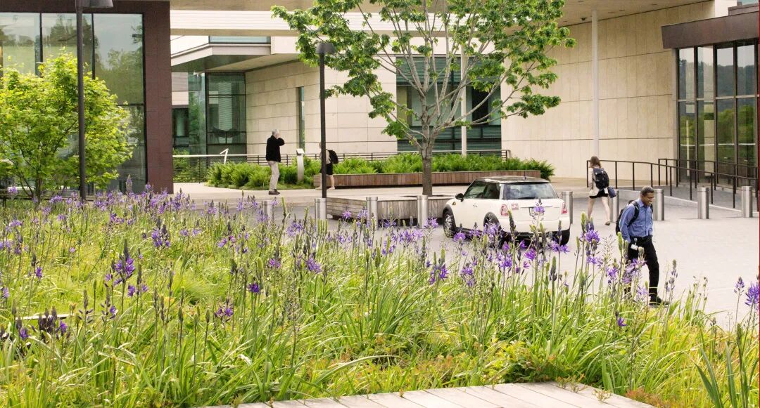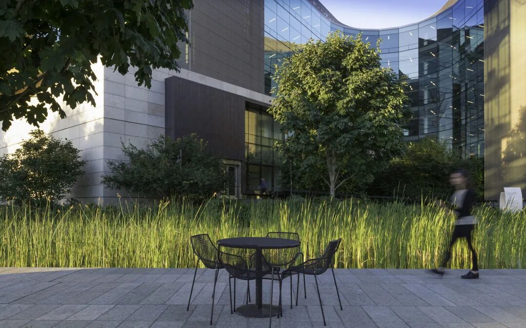 Gustafson Porter + Bowman对中央"绿心"的设计统一了建筑与种植元素。蜿蜒的坡道在最重要的楼层之间创造了视觉和物理联系。