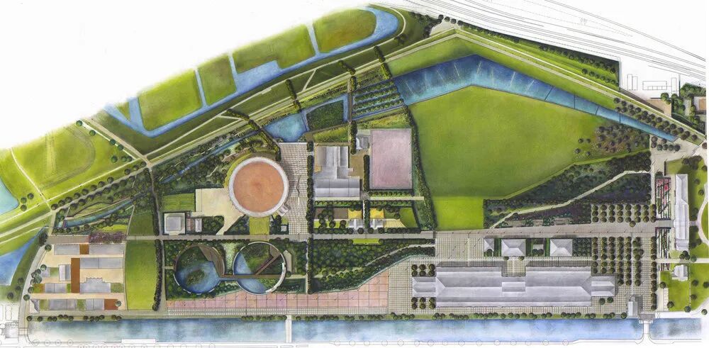 项目占地11.5公顷,整体规划设计希望在污染与再生之间找到平衡。该设计融合了公民,社会,商业,文化,娱乐,生态等用途,它成为了一个城市的综合体,而不是传统公园结构。