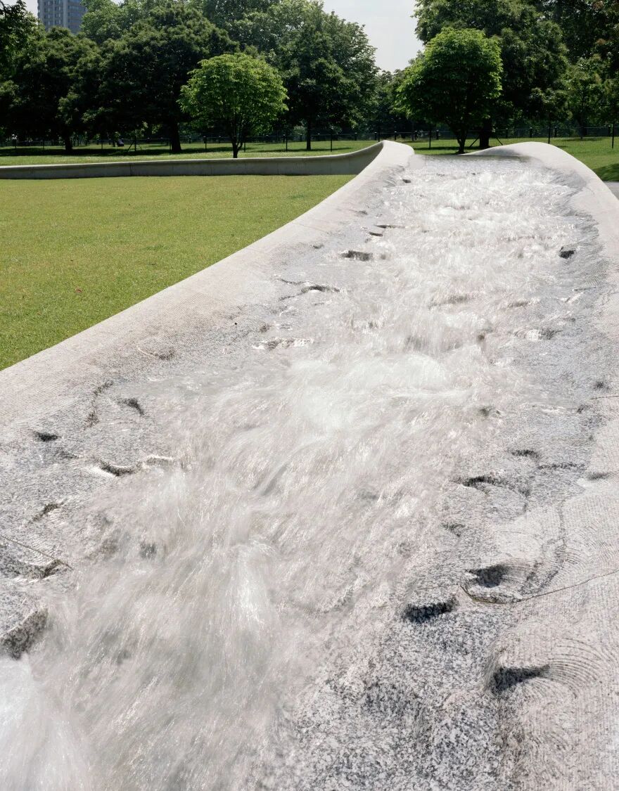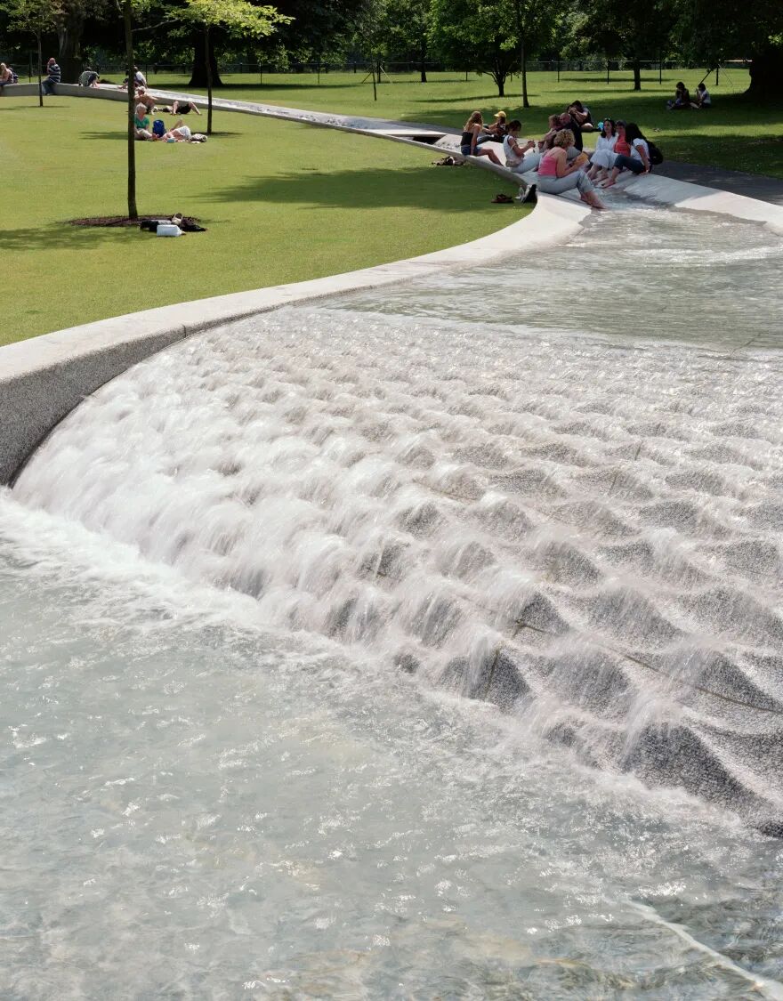 整个喷泉的雕塑形式融入了伦敦海德公园的自然斜坡,旨在辐射能量并吸引人们向内。喷泉是游客与水互动的热门场所,具有凹槽和通道与喷泉相结合,使水充满活力,并产生不同的效果。