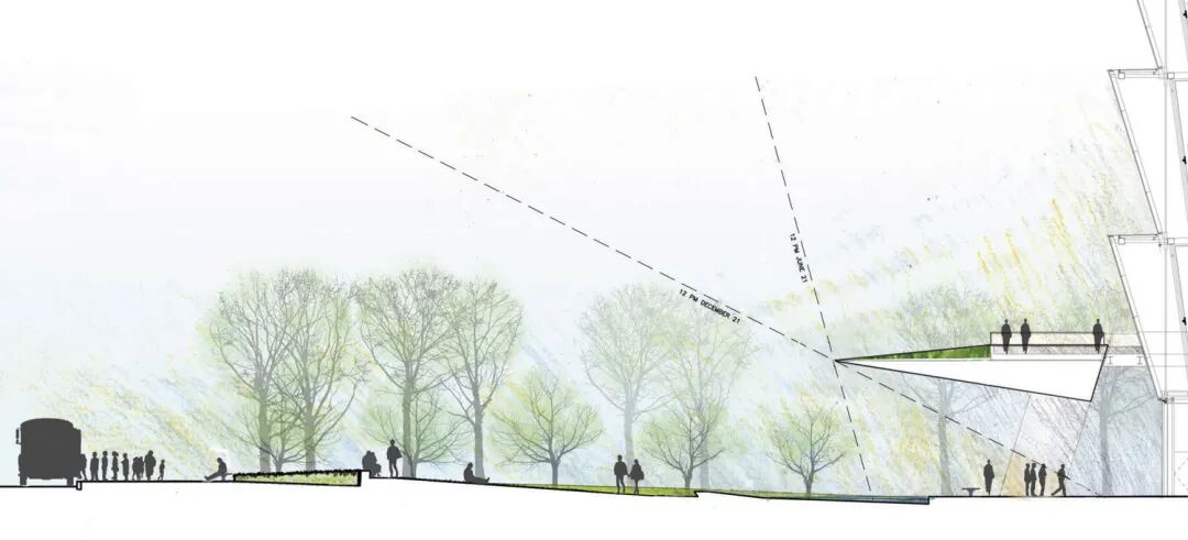 该设计通过博物馆遗址绘制了华盛顿纪念碑场地的开放性与田园性,与周围的环境(包括相邻的华盛顿纪念馆和白宫)建立了重要联系。