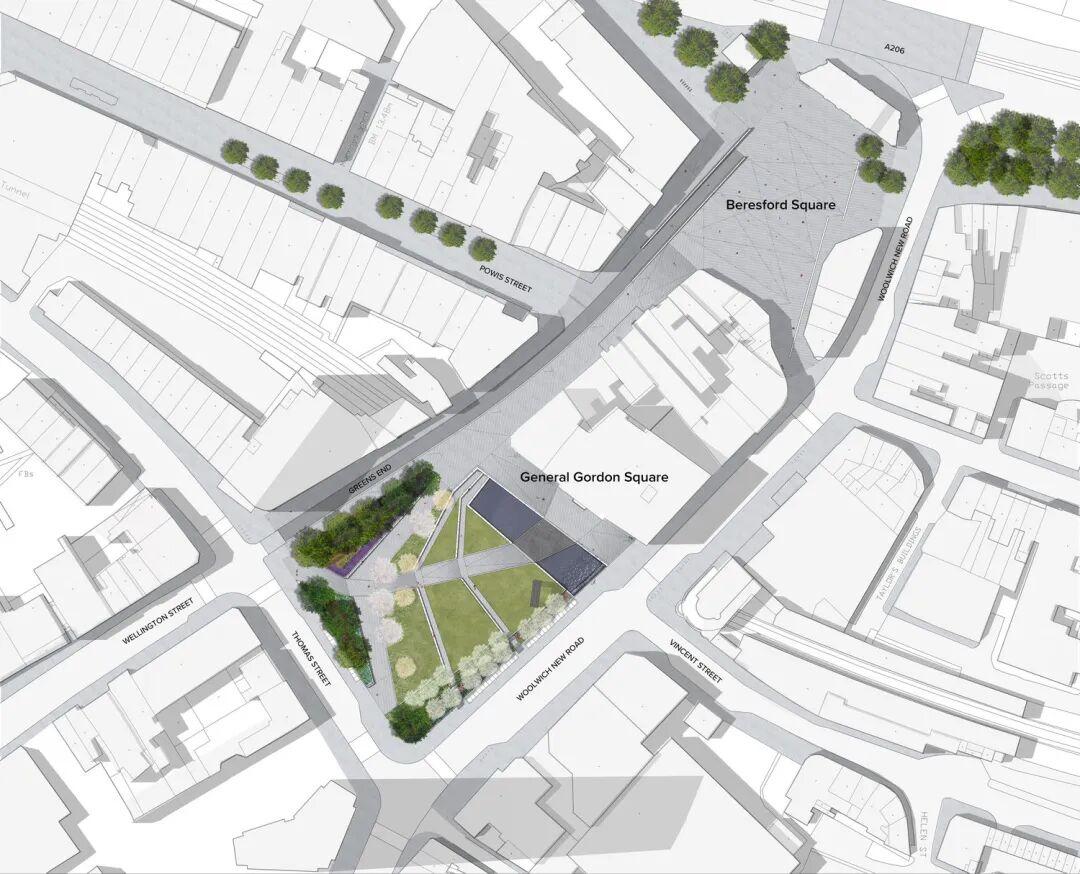 Gustafson Porter + Bowman的设计基于每个广场都体现了伍尔维奇的基本品质,无论是历史的还是自然的,并寻求创造伍尔维奇特有的空间。
