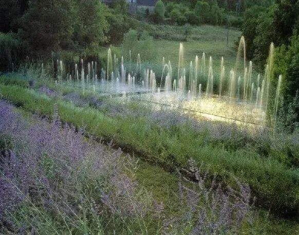 古斯塔夫森在花园设计中,将风、水、声音、光、植物等自然元素被巧妙利用起来,流线型的地形塑造与细腻的细节处理展现了其女性浪漫的设计基调。