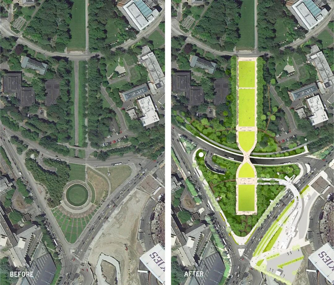 ·Lower Rainier Vista & Human Land Bridge平面图前后对比 ©ggnltd.com