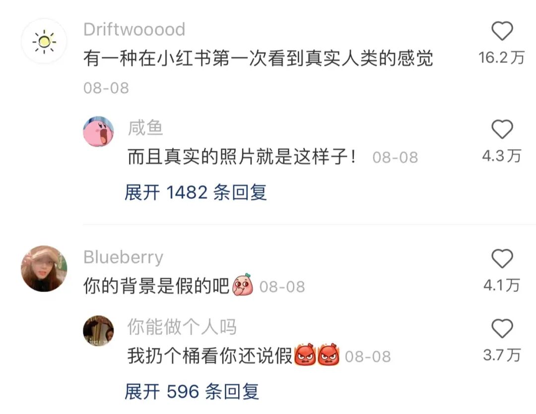 多年不见的初中同学从评论区冒了出来,还有人评论“感觉第一次在某书上看到真实人类”。
