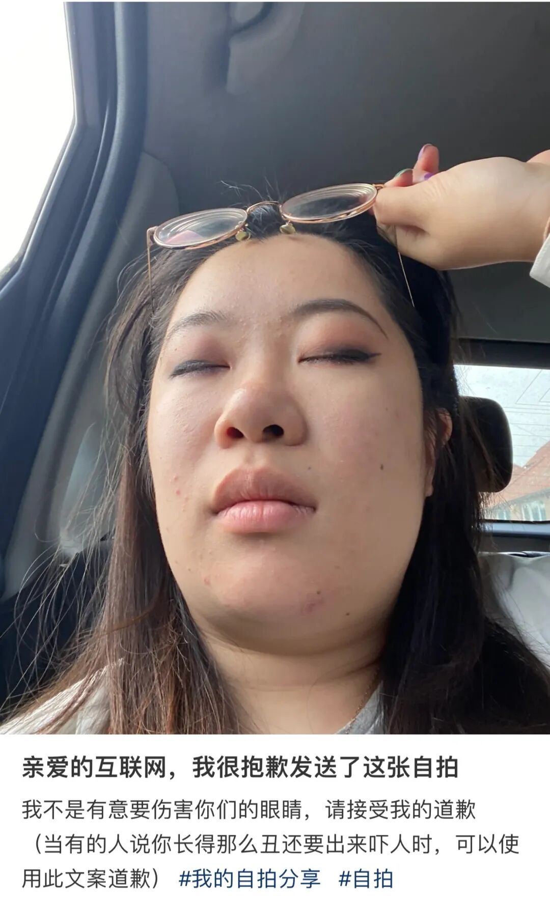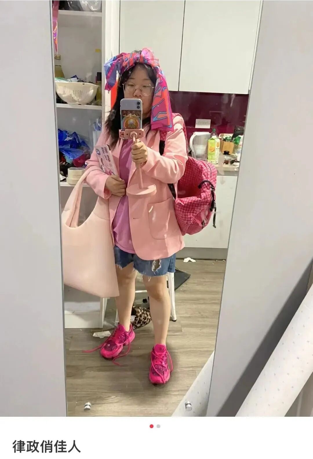 照片上的她有点不修边幅,没开美颜,没有凹造型,头发还有点被风吹乱了;镜头有点“死亡角度”,也没有修图,帖子是如假包换的原片直出。