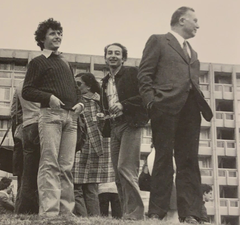1974年卡罗与学生一起在伦敦旅行,在艾莉森和彼得史密森设计的罗宾汉花园房屋之间的山丘上