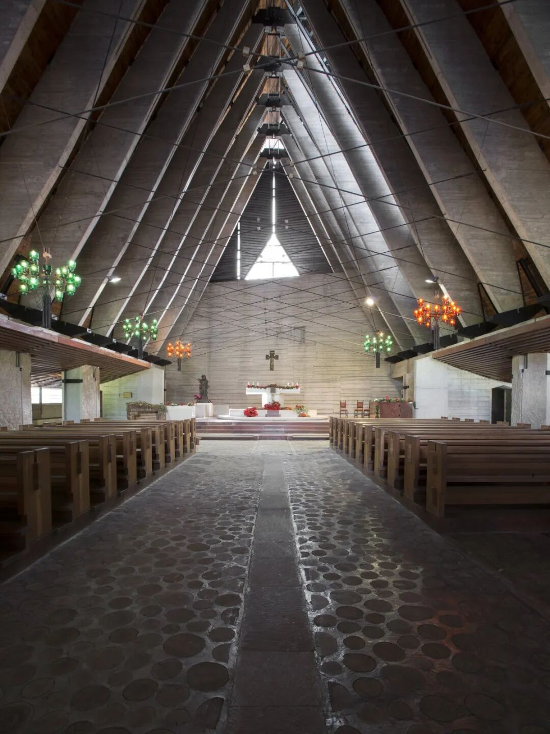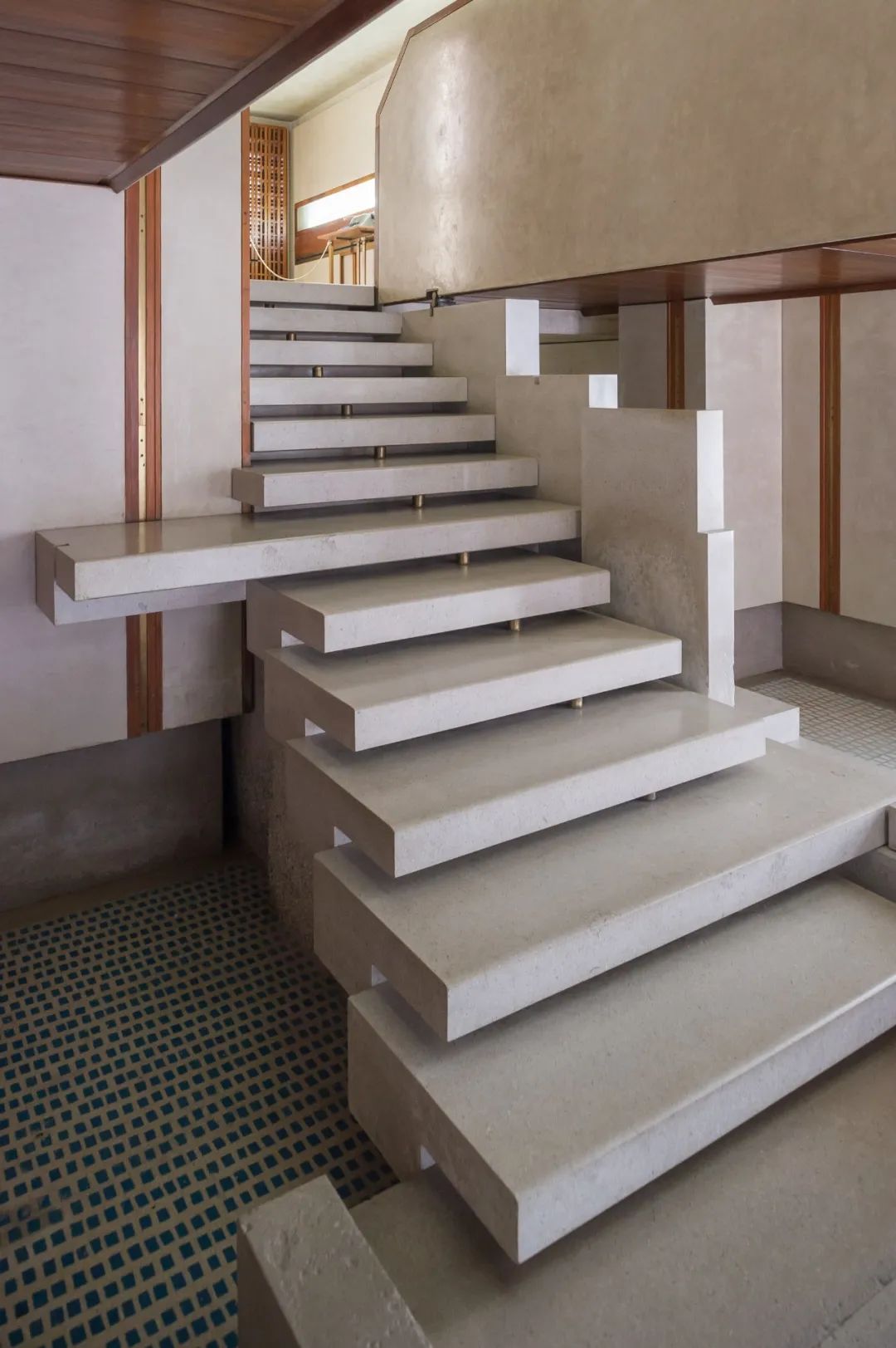 卡洛·斯卡帕通过在外部增加窗户,在二楼增加木格栅来控制光线的进入,选择人工照明和室内材料来控制室内的光线,通过玻璃瓷砖地板和光滑的石墙将光线反射到整个空间。