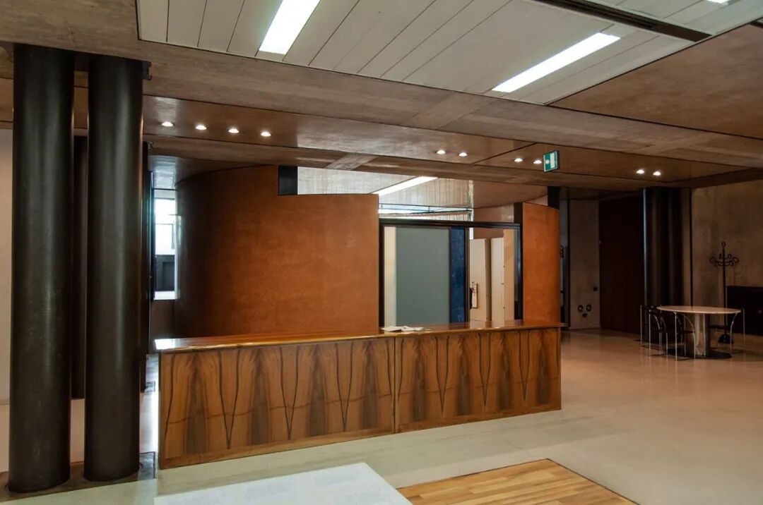 Olivetti 公司是一家打字机制造商,在1950年代率先制造了早期计算机。卡洛·斯卡帕于 1957年受 Olivetti 公司委托,设计一个展示产品的空间。