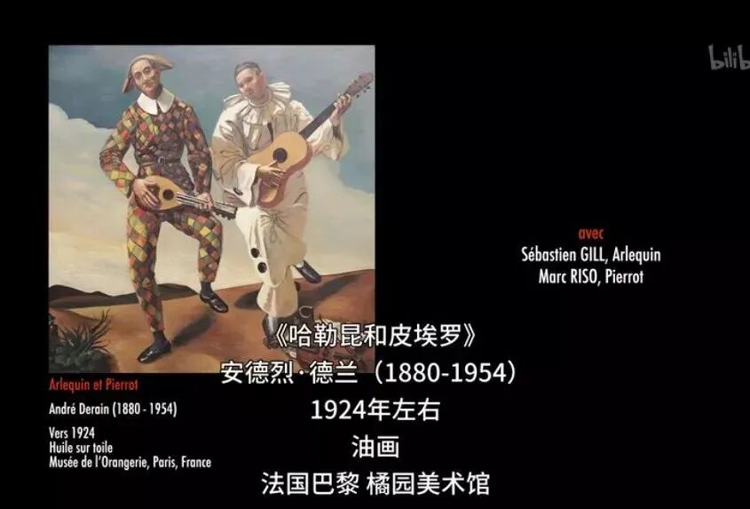 在纪录片中,还通过野兽派画家安德烈·德兰的经典作品《哈勒昆和皮埃罗》让我们轻松了解了什么是野兽派风格特征,一本正经地通过简短的语言为大家科普了为什么《美国哥特式》这幅画中的人物总是整天板着脸。