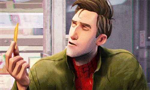 在动画中,有从另一个时空穿梭过来的中年彼得帕克,堕落成了肥宅,隆起的肚腩变成了一种象征。他是许多中年男人的真实写照。