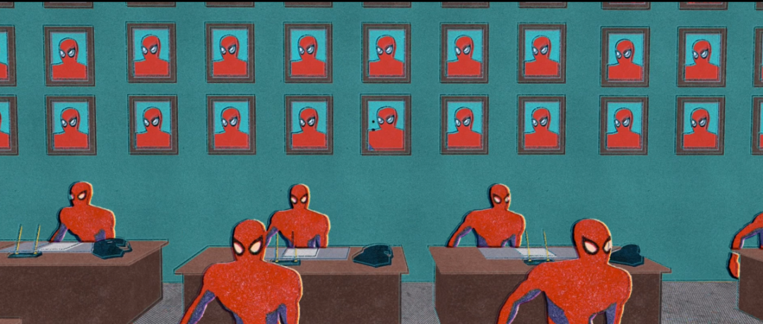 而片尾一堆蜘蛛侠相框挂在墙壁上,与安迪·沃霍尔《玛丽莲·梦露》有异曲同工之妙;